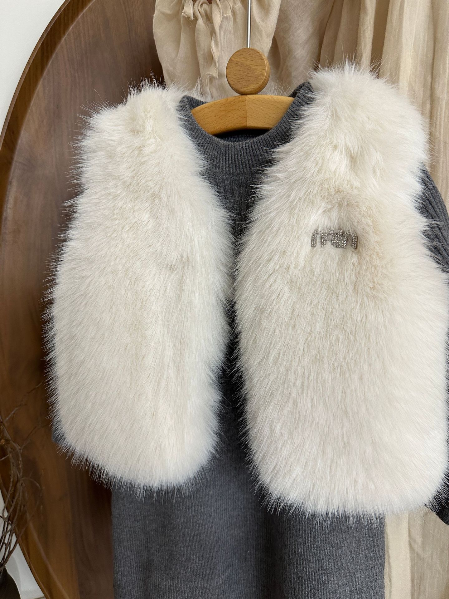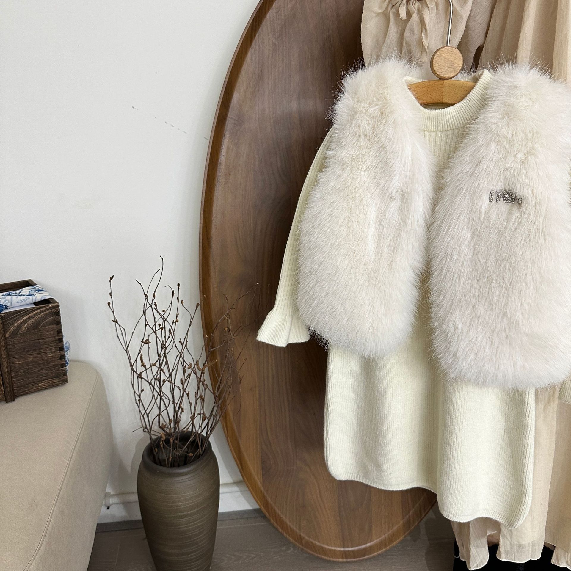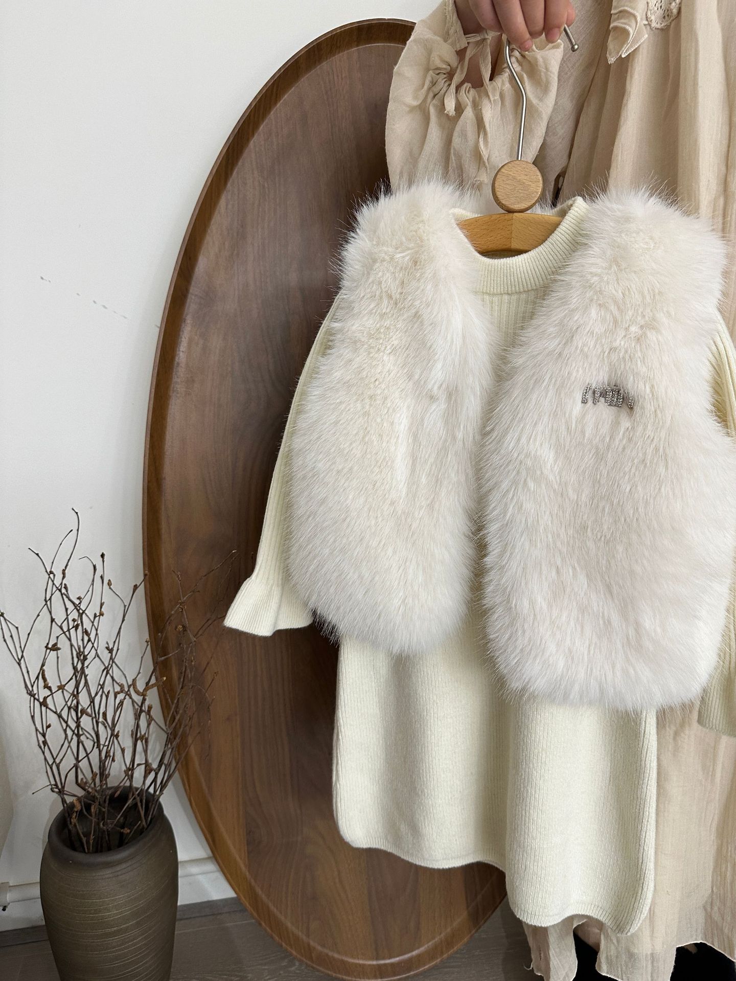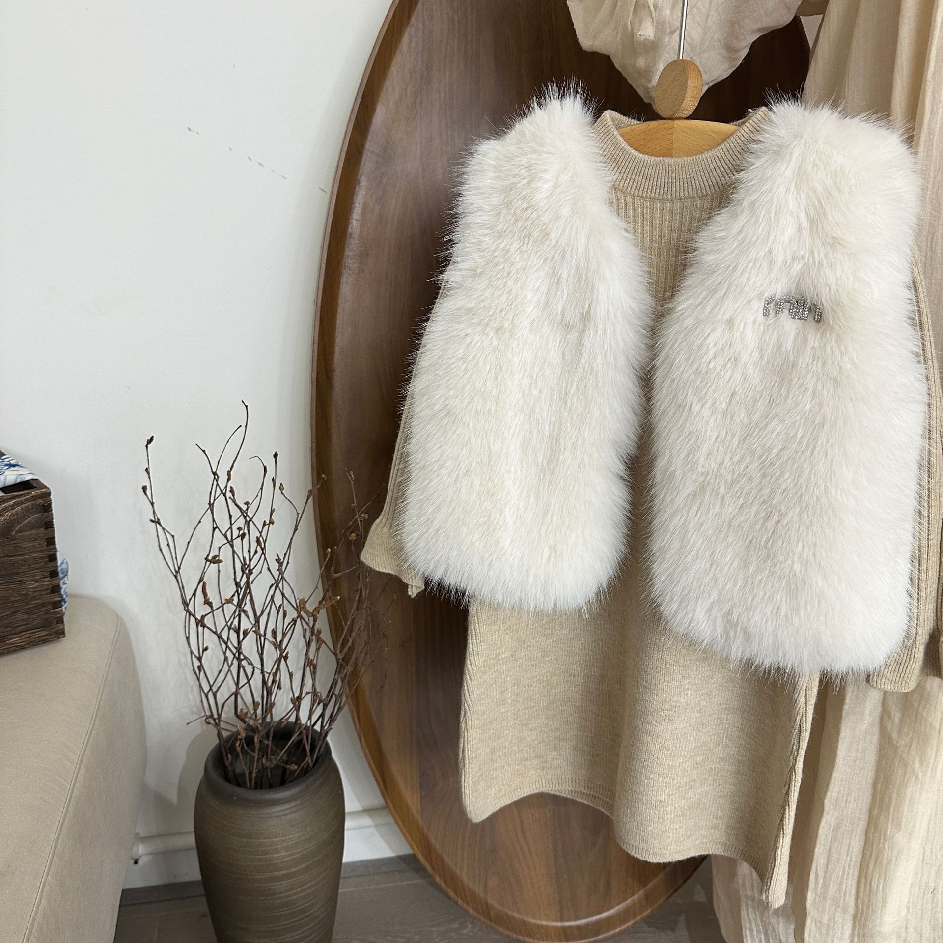 여자 모피 조끼 25 가을, 겨울 새 아기 한국어 버전 솔리드 컬러 모피 조끼 스웨터 드레스 투피스 유행 세트스토어 가기