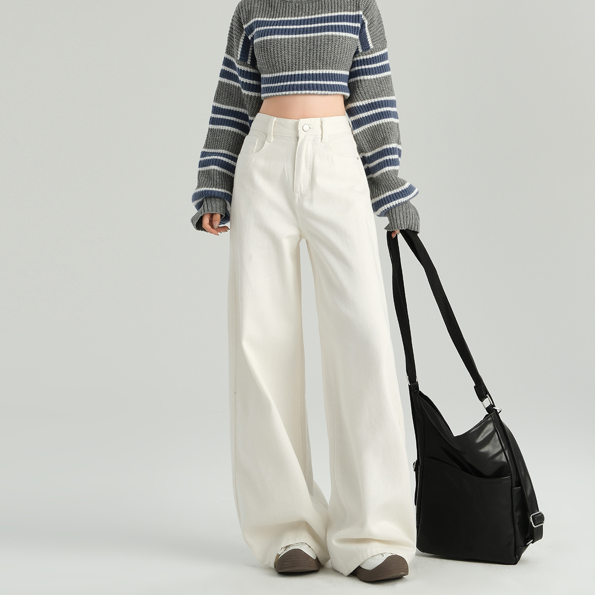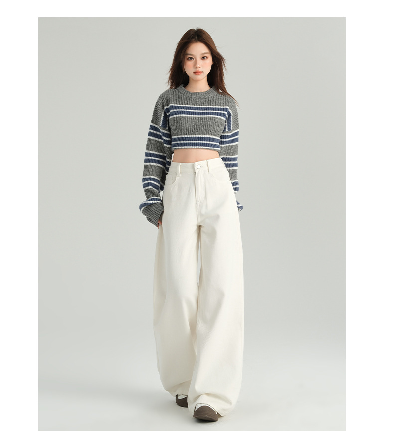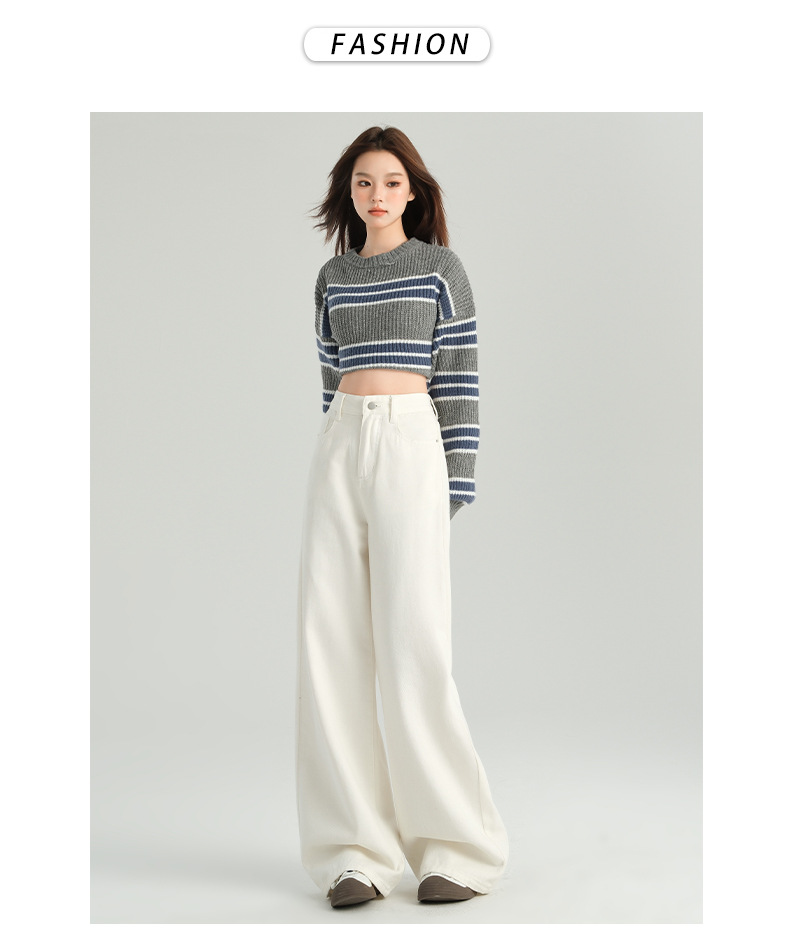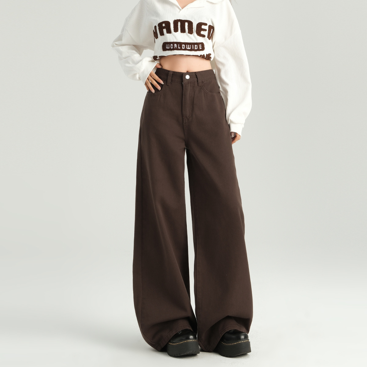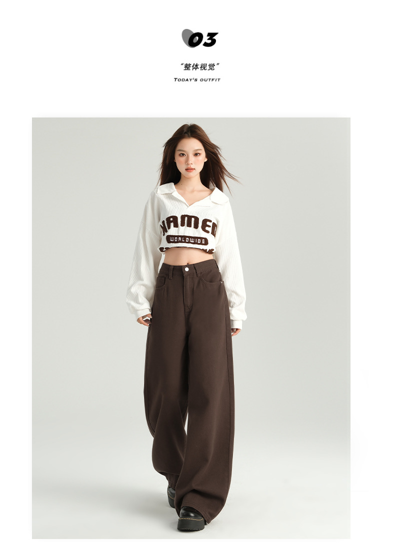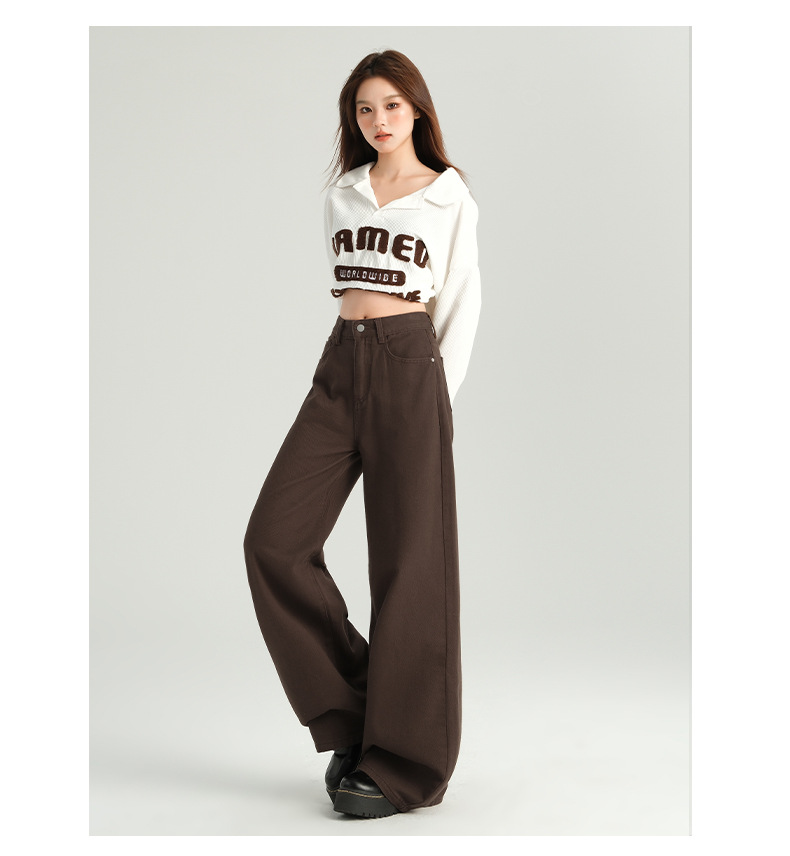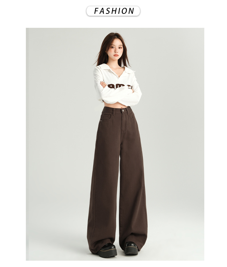 다크 브라운 넓은 다리 청바지 여성의 2024 년 가을 새해 인기 폭발 Maillard 느슨한 슬림 스트레이트 팬츠