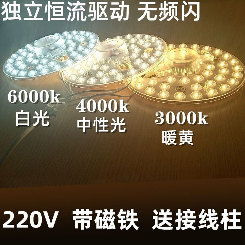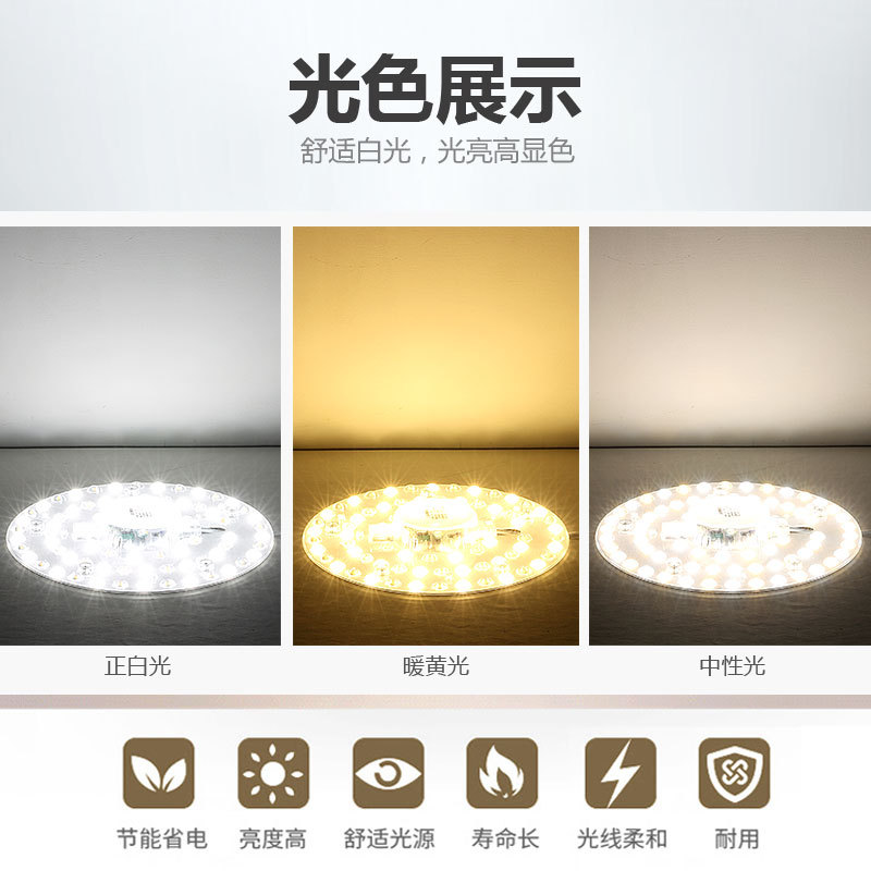 LED 심지 천장 램프 광원 따뜻한 노란색 램프 튜브 액세서리 3 색 눈 보호 교체 전체 스펙트럼 램프 패널 자기 매력