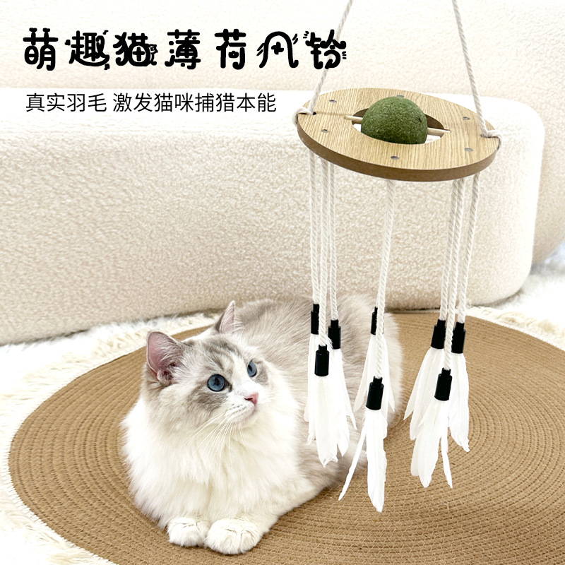 보헤미안 짠 애완 동물 장난감 바람 벨 깃털 재미 고양이 장난감 개울 공 몰 물린 방지 개 대화 형