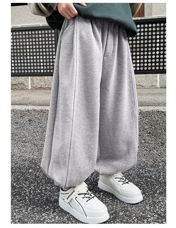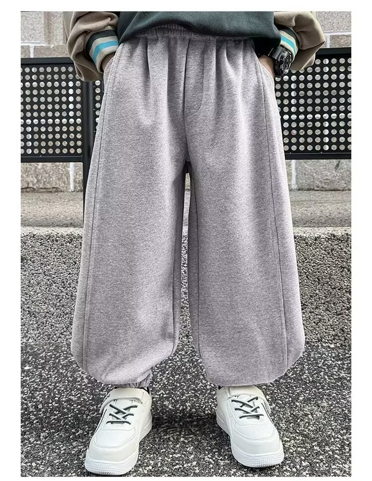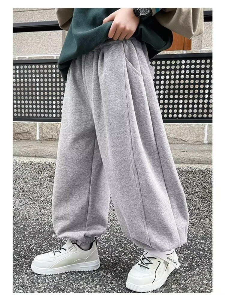 소년 바지 가을 겨울 2024 새로운 어린이 가을 캐주얼 스포츠 바지 큰 소년의 기모 운동복 유행
