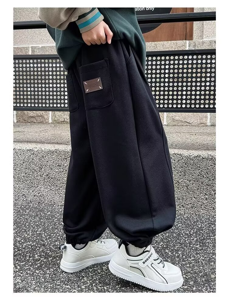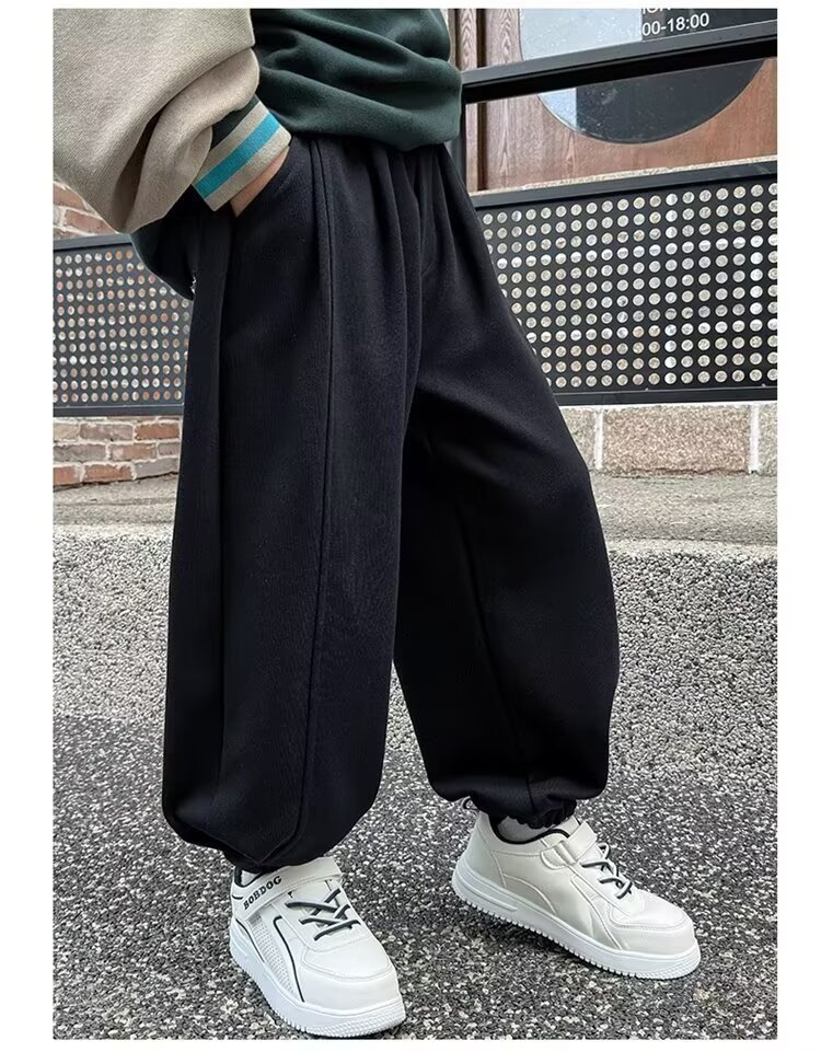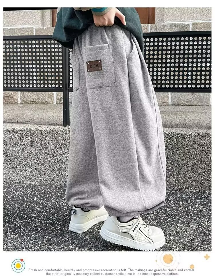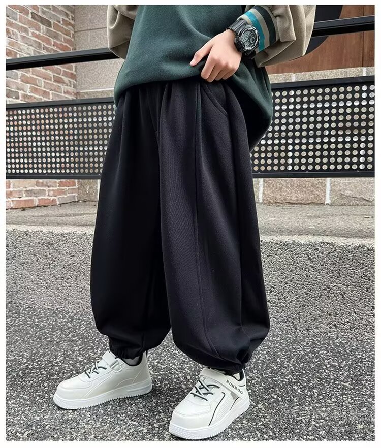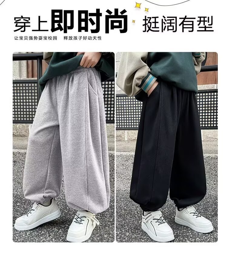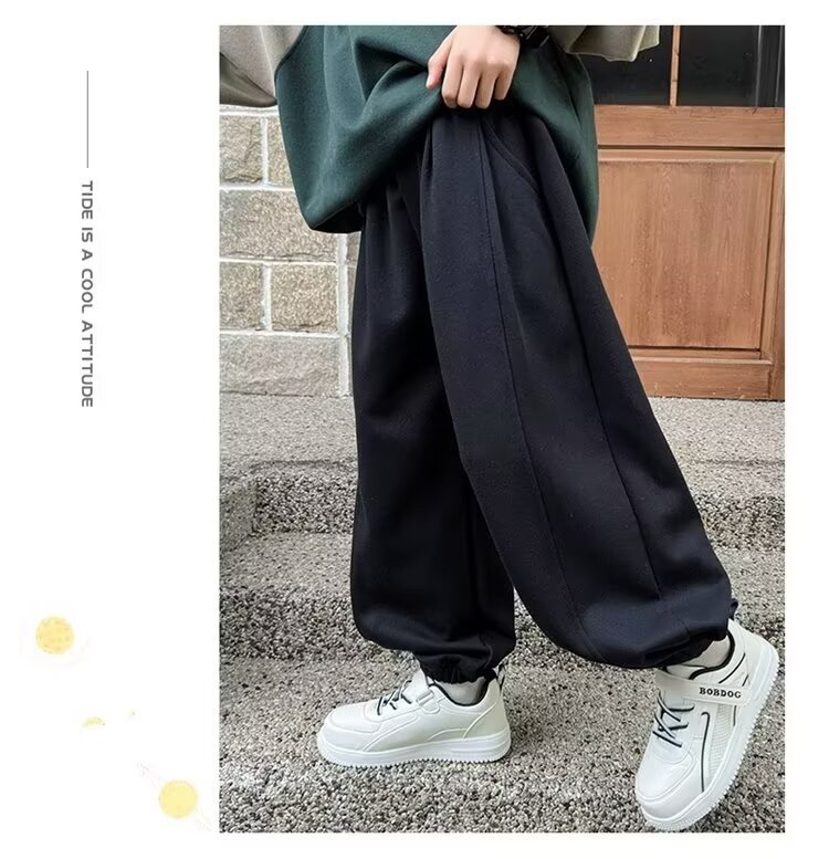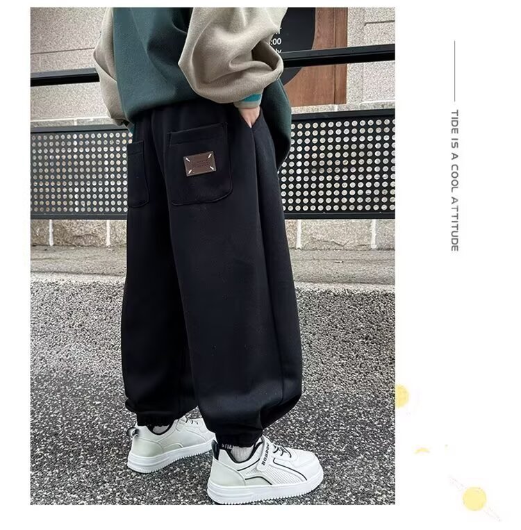 소년 바지 가을 겨울 2024 새로운 어린이 가을 캐주얼 스포츠 바지 큰 소년의 기모 운동복 유행스토어 가기