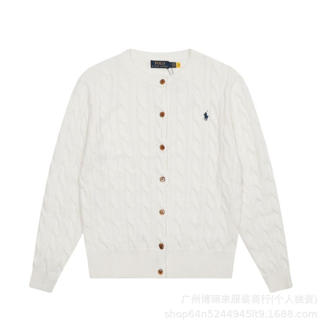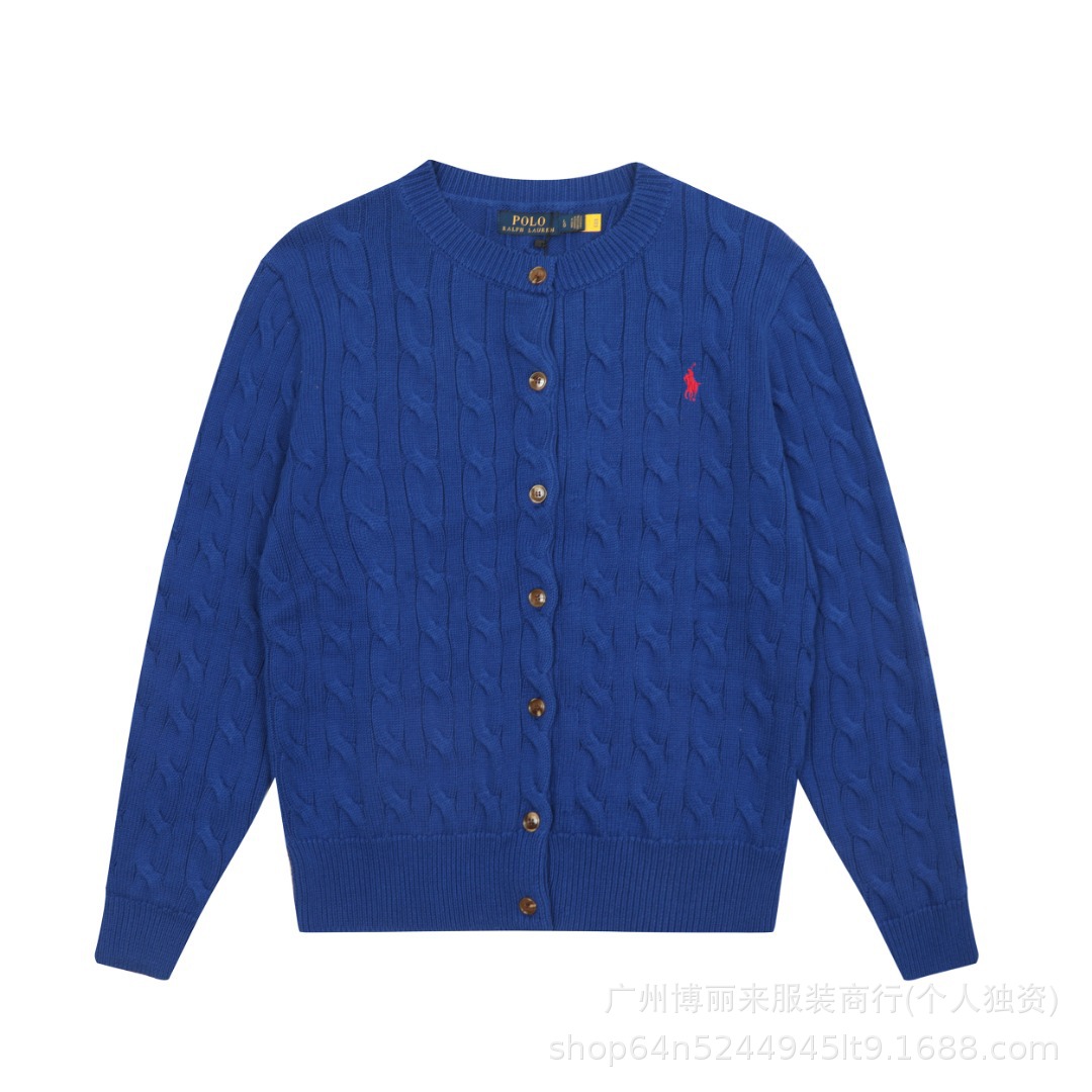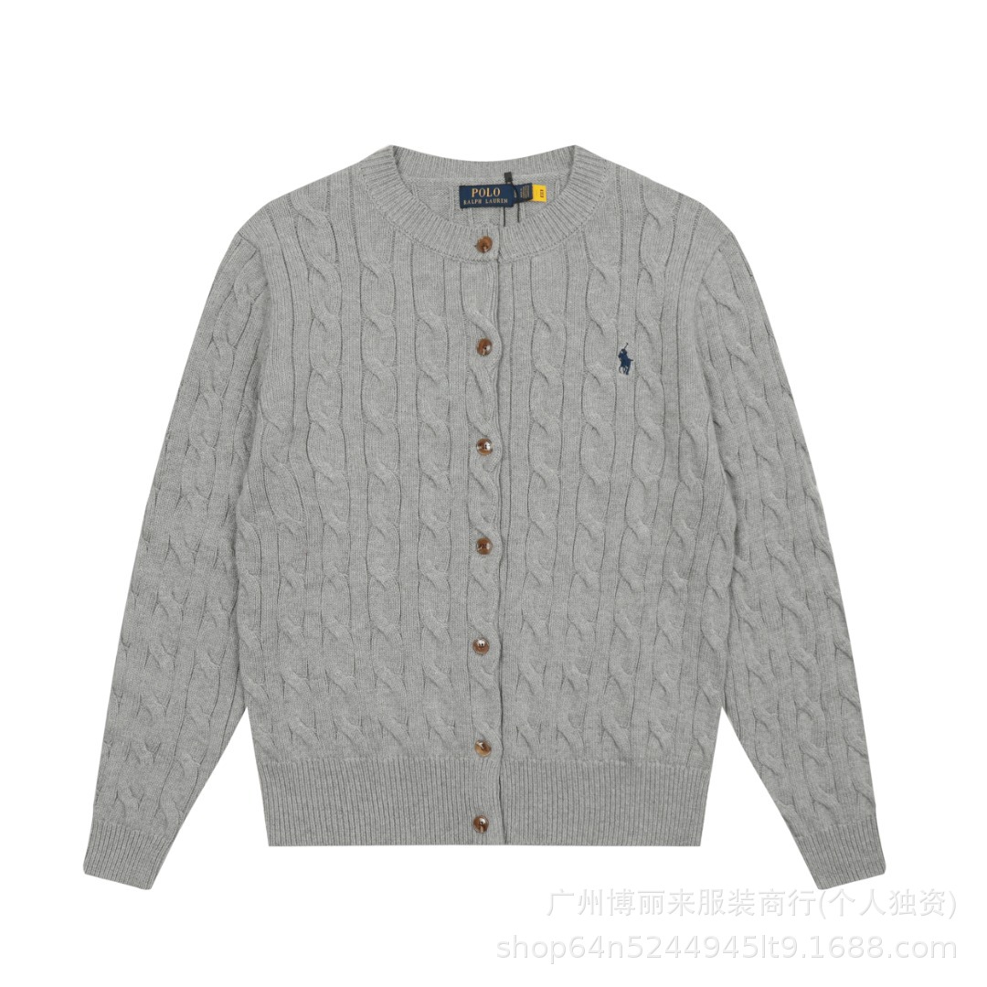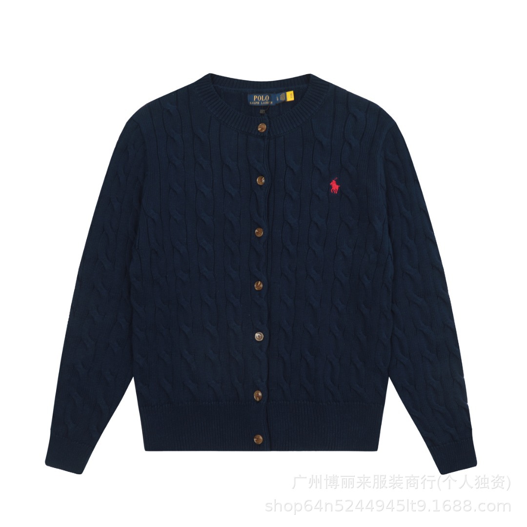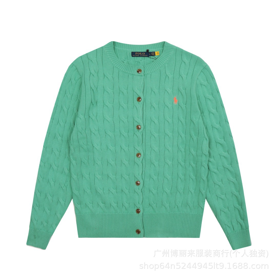 스윕 코드 ~ 국경 간 RL 조랑말 로고 자수 둥근 목 단색 긴 소매 니트 카디건 코트 폭발 여성 헤어 세대