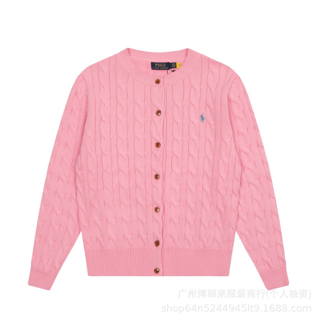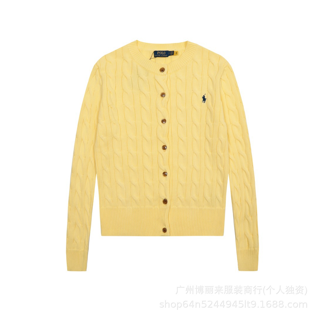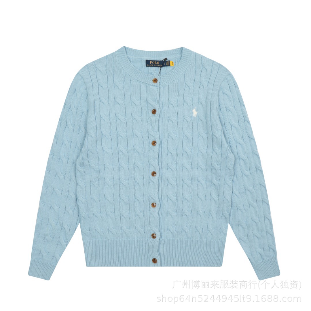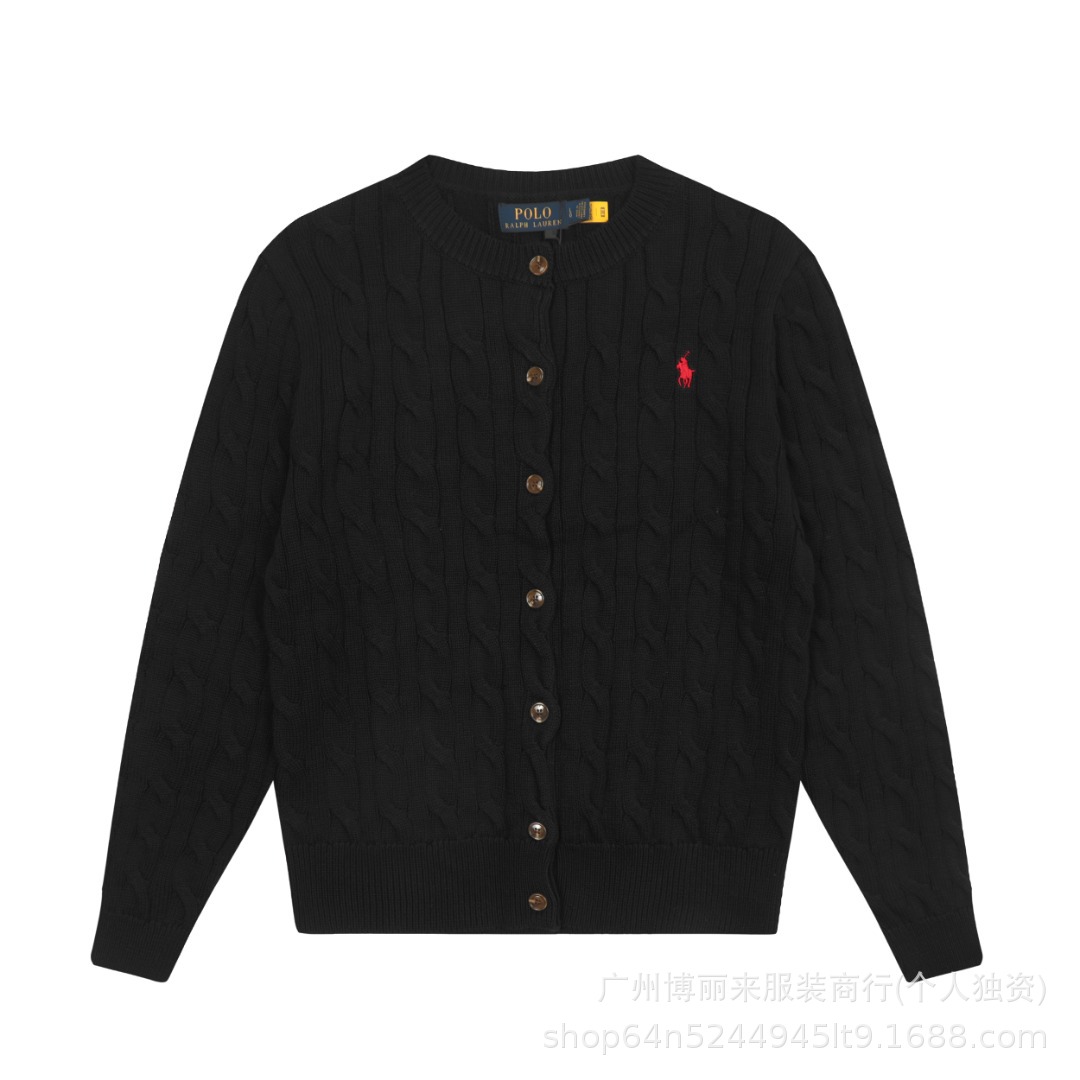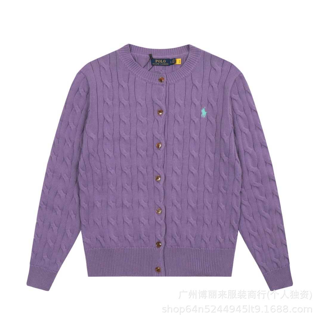 스윕 코드 ~ 국경 간 RL 조랑말 로고 자수 둥근 목 단색 긴 소매 니트 카디건 코트 폭발 여성 헤어 세대