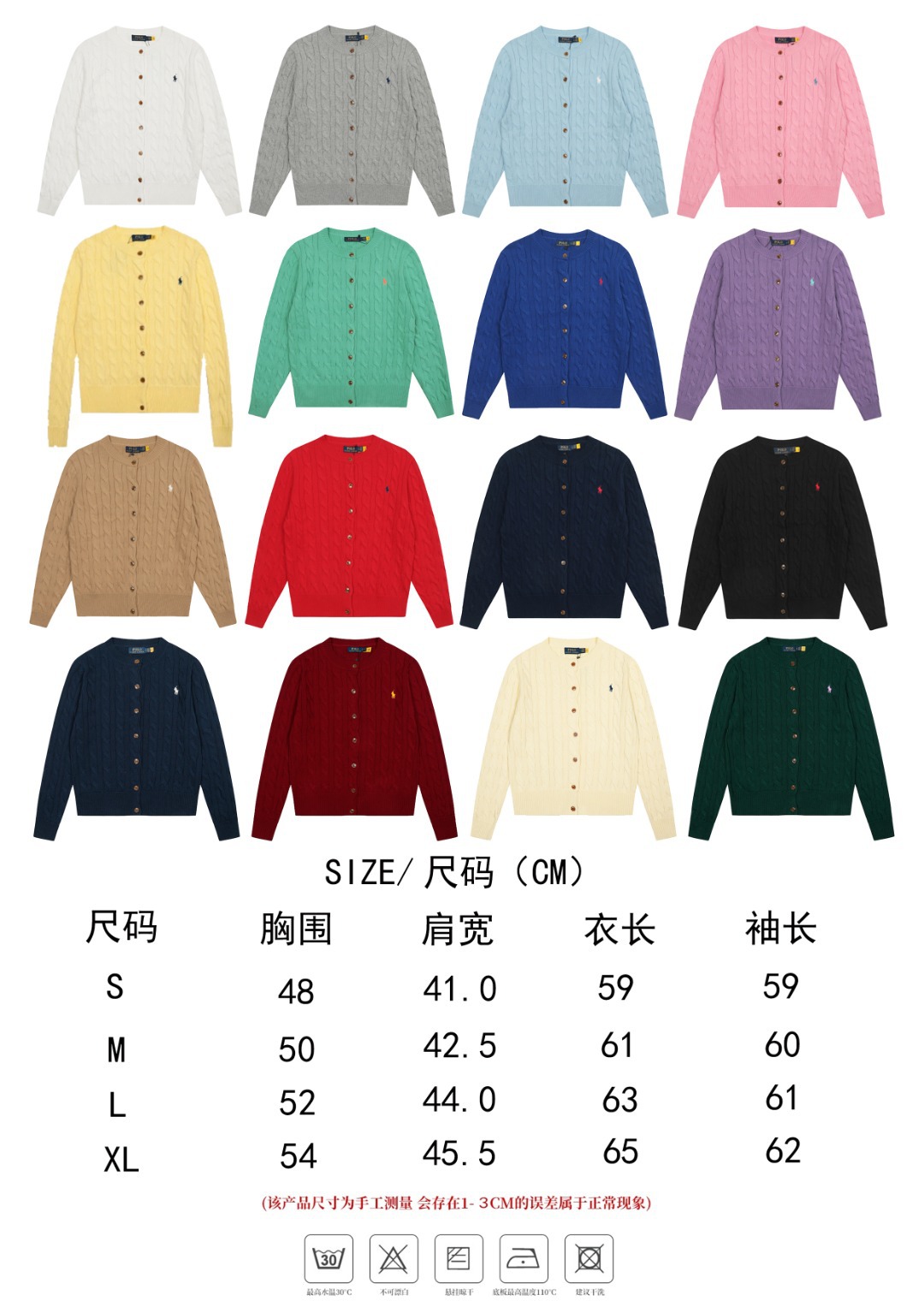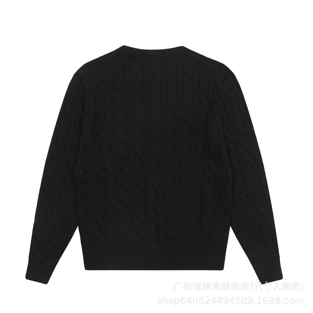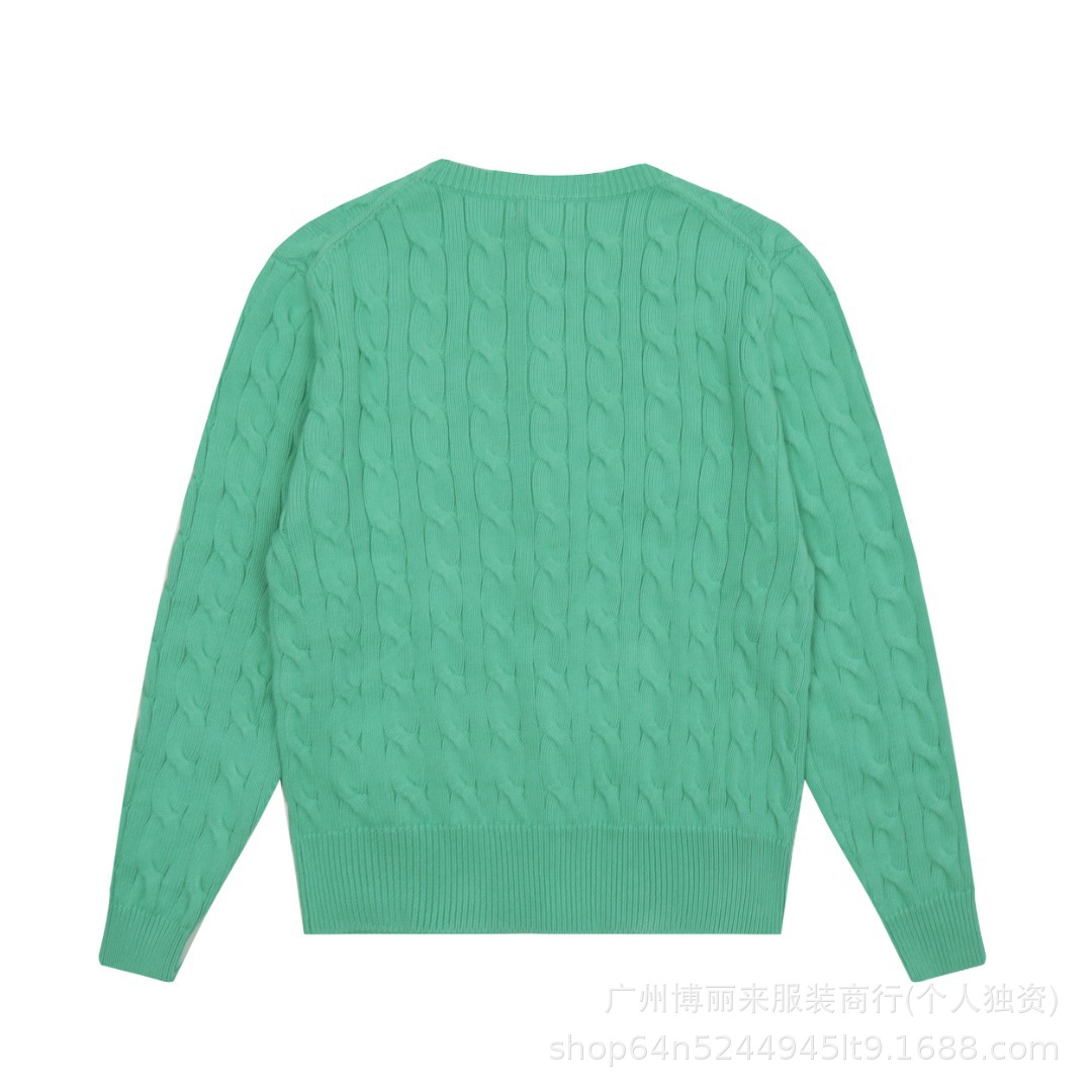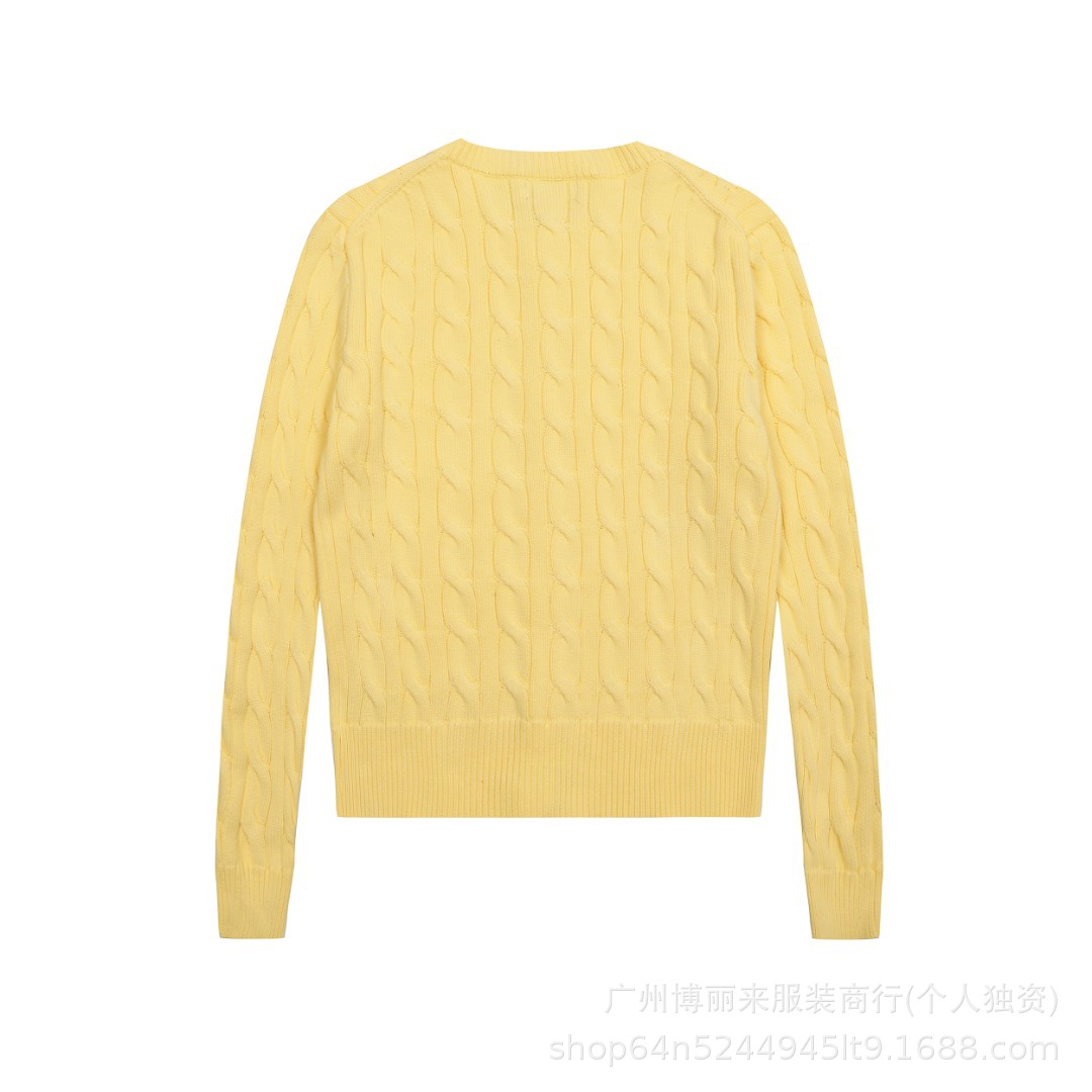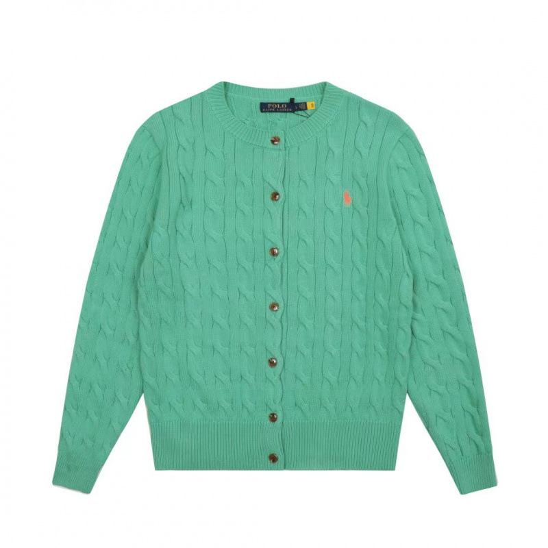 스윕 코드 ~ 국경 간 RL 조랑말 로고 자수 둥근 목 단색 긴 소매 니트 카디건 코트 폭발 여성 헤어 세대