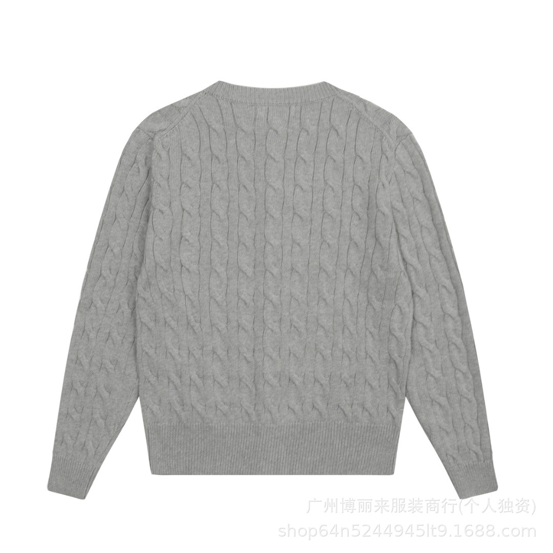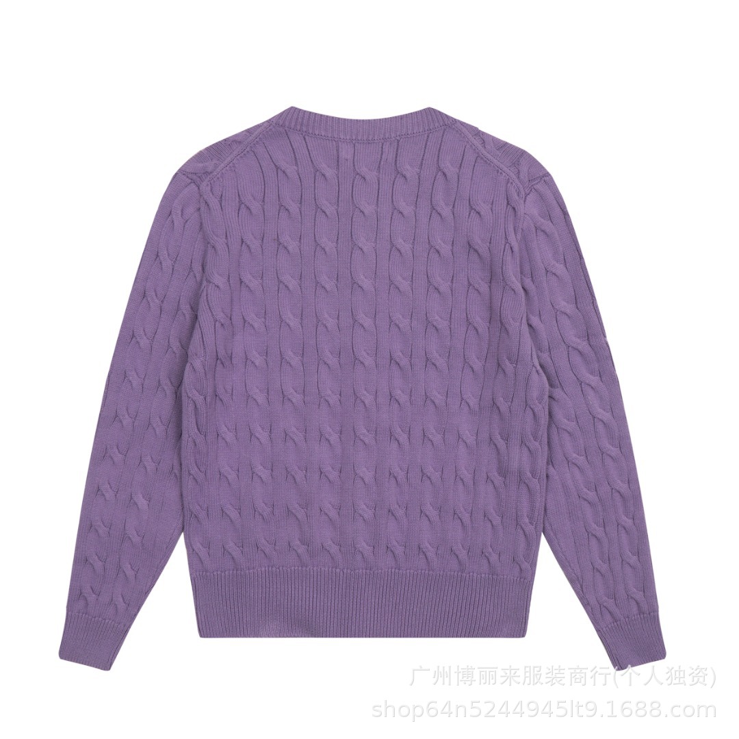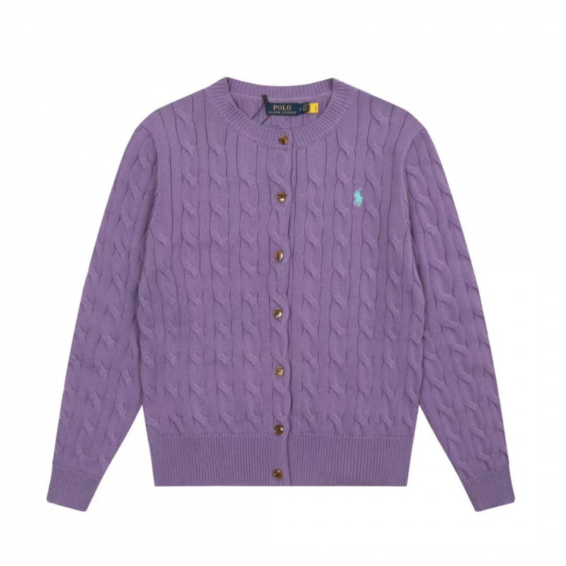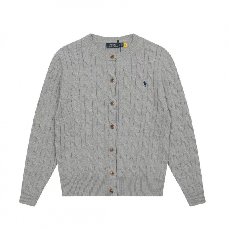 스윕 코드 ~ 국경 간 RL 조랑말 로고 자수 둥근 목 단색 긴 소매 니트 카디건 코트 폭발 여성 헤어 세대스토어 가기