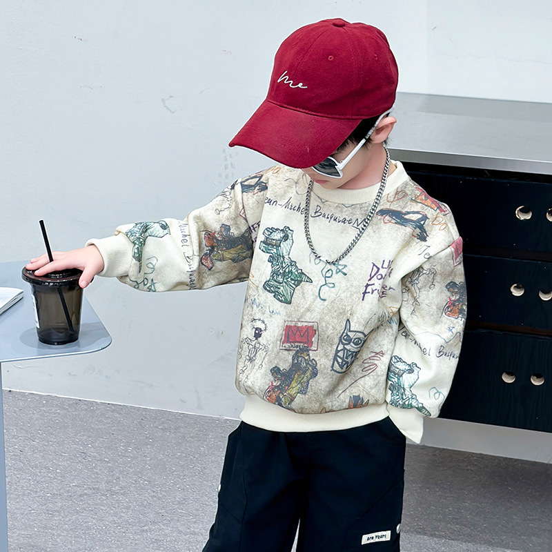 남학생 운동복 가을 봄과 가을 2024 새로운 도착 소년 잘 생긴 서양식 중첩 어린이 긴 소매 올매치 트렌디 탑스토어 가기