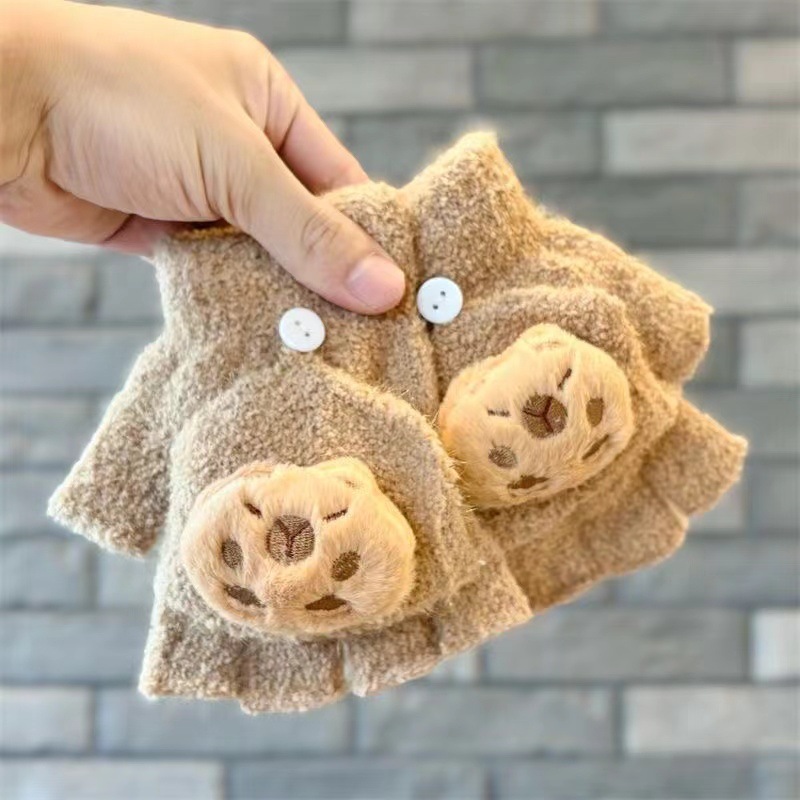 • 나비넥타이 자수 고양이 머리 플립 장갑
