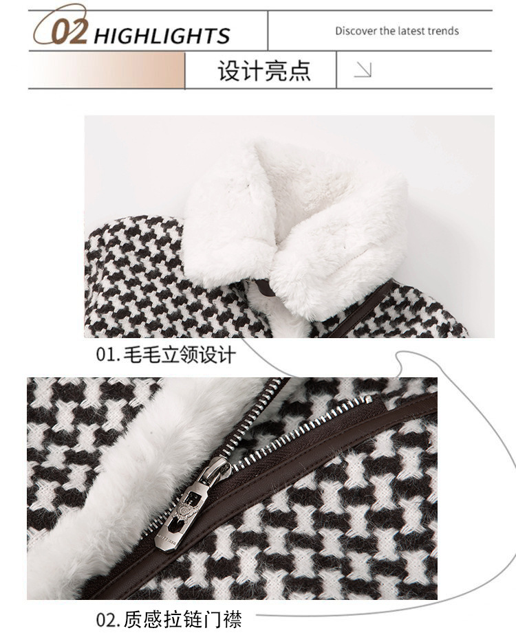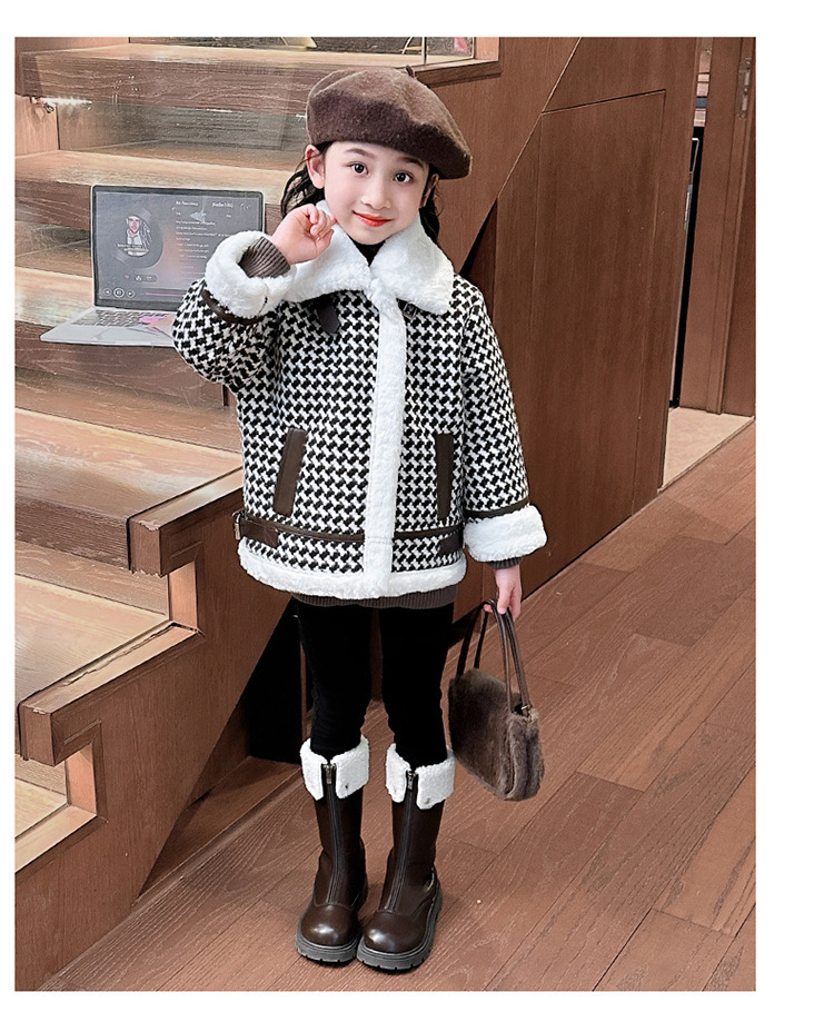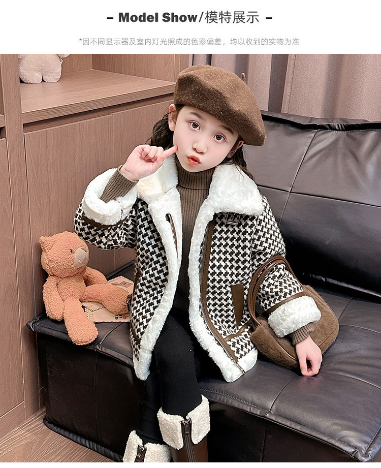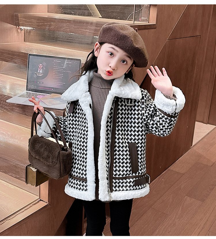 24 여자 샤넬 스타일 코트 기모 겨울복 여성용 보물 한국식 하운스 투스 재킷 윈드브레이커 어린 소녀 인터넷 기념 아동복