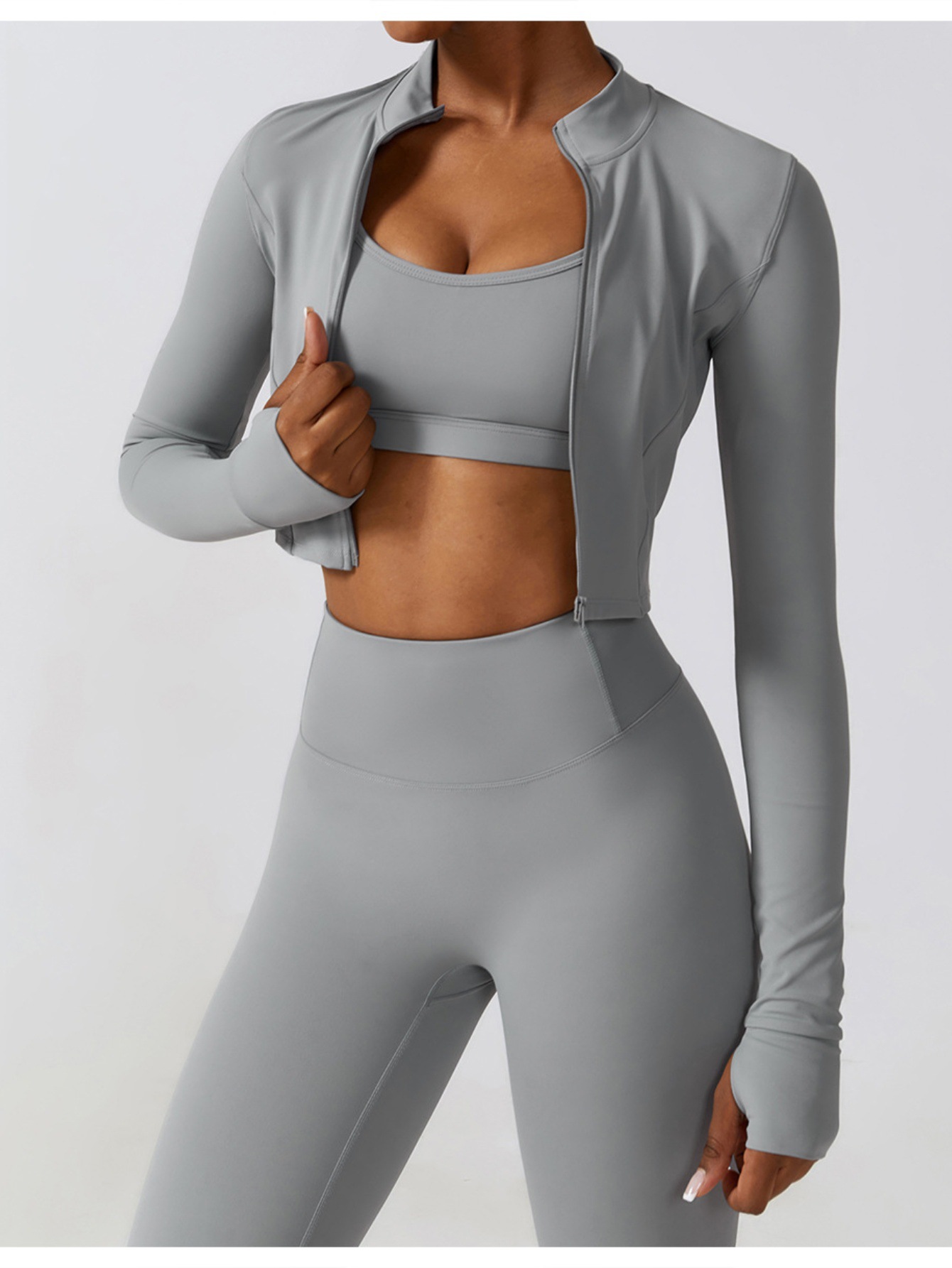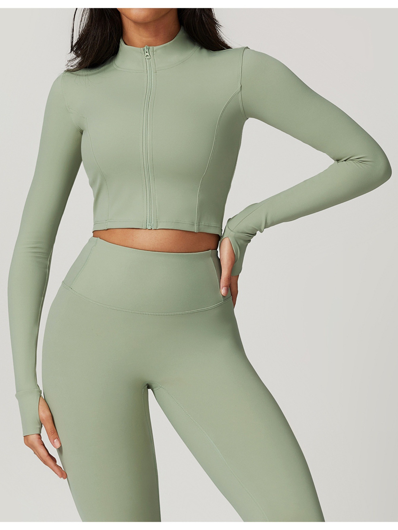 새로운 지퍼 야외 달리기 스포츠 요가 자켓 슬리밍 피트니스 긴 소매 재킷 소녀 빠른 건조 요가 세트