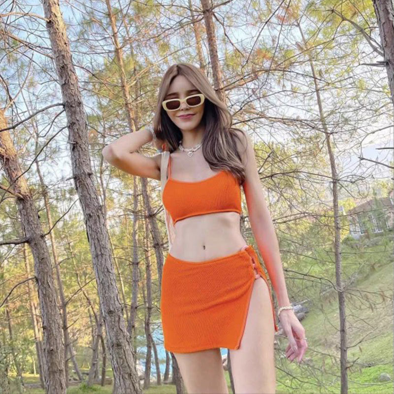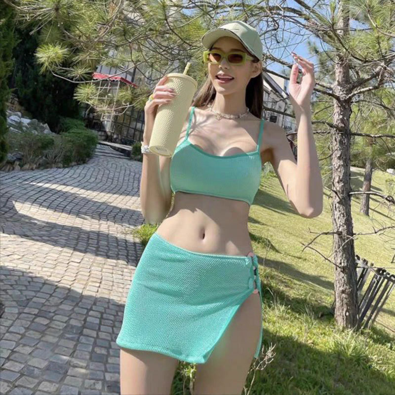 수영복 여성용 2024 새로운 핫 스타일 섹시한 해변 휴가 3 피스 세트 여성용 스플릿 화려한 비키니 온천스토어 가기
