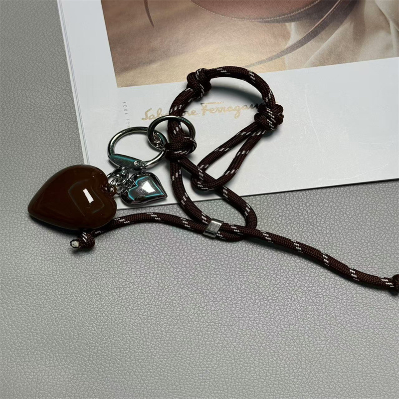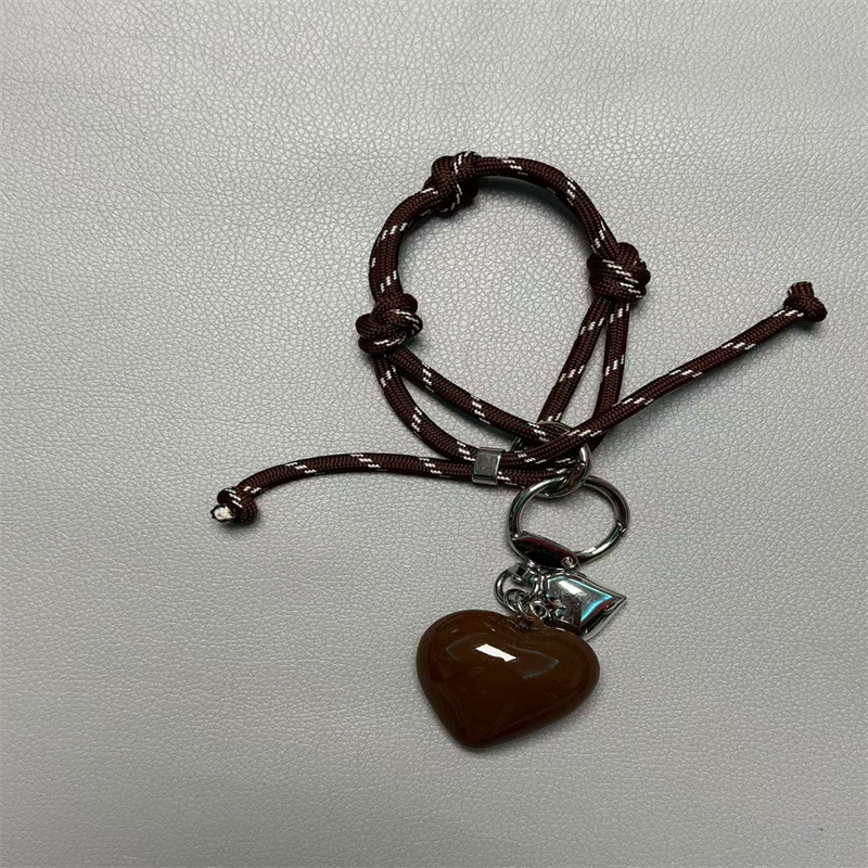 • 갈색 사랑 열쇠고리 + 줄무늬 밧줄