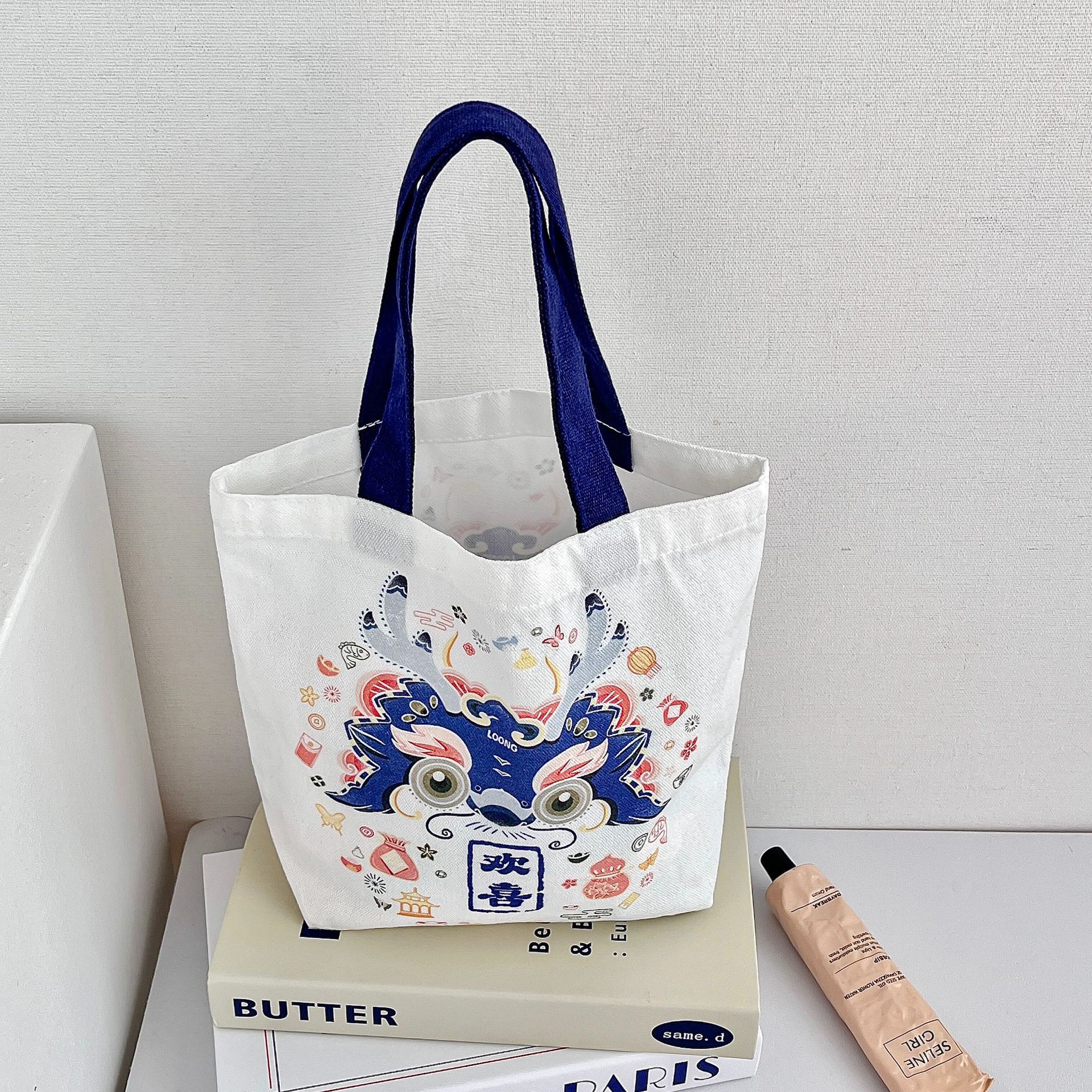 • 해피 드래곤 블루 핸드백 1 폴리에스터 코튼 캔버스