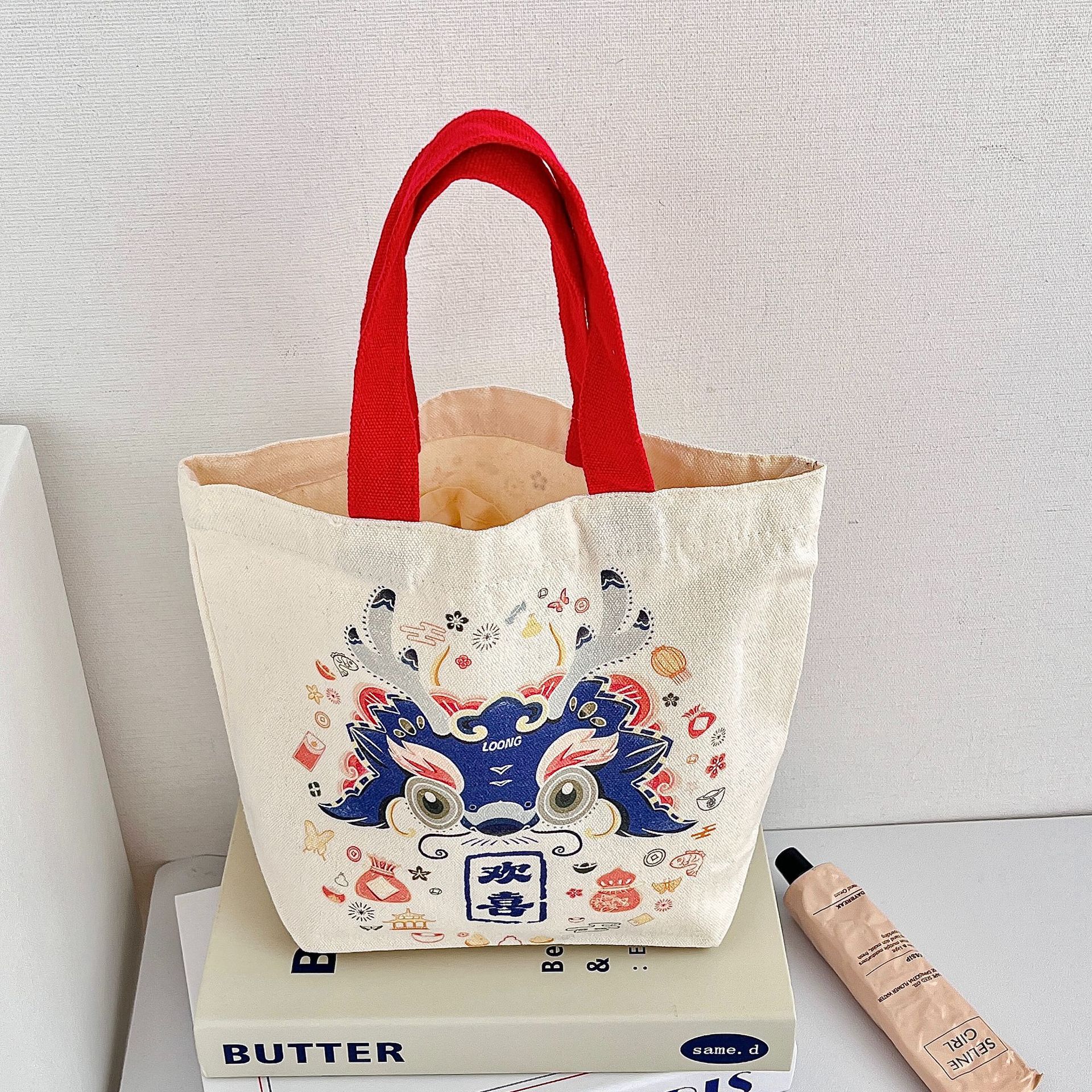 캔버스 가방 작은 올 매치 핸드백 여성 학생 귀여운 도시락 가방 손 가방 작업 점심 가방 캐주얼