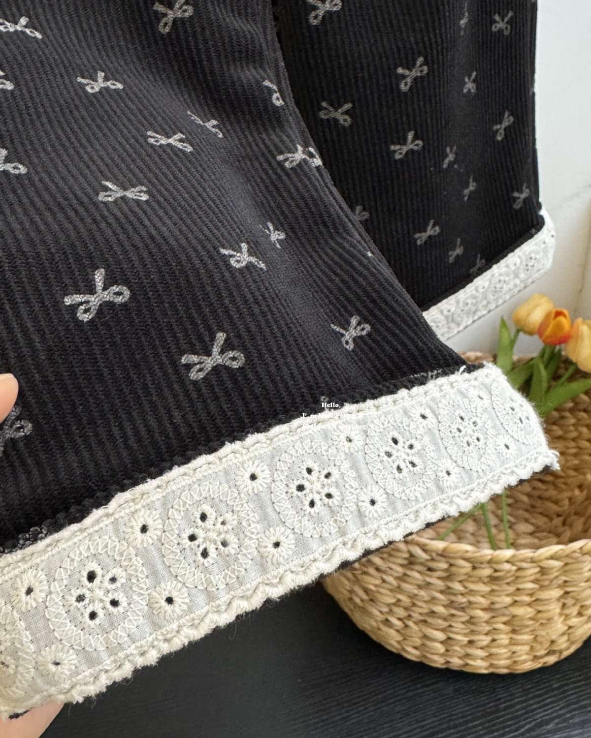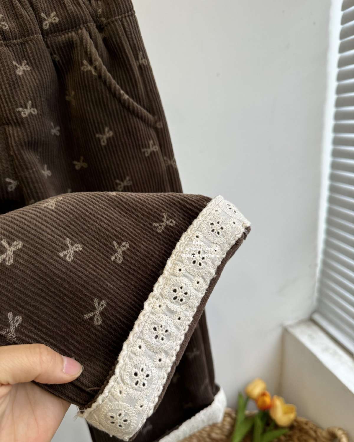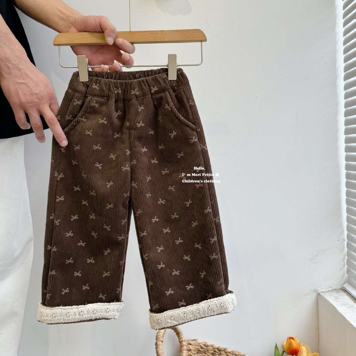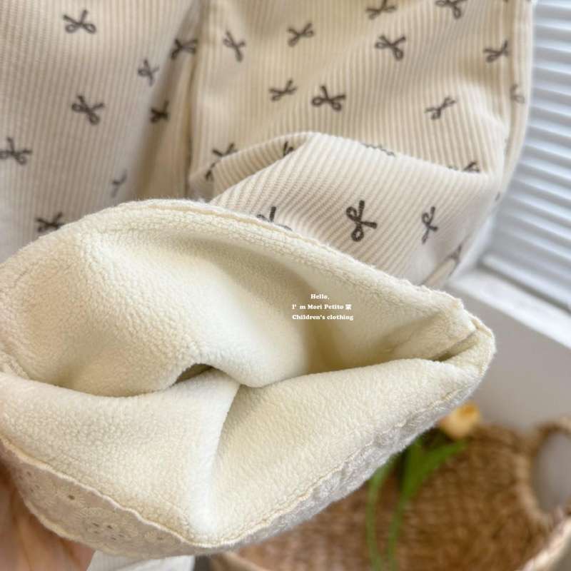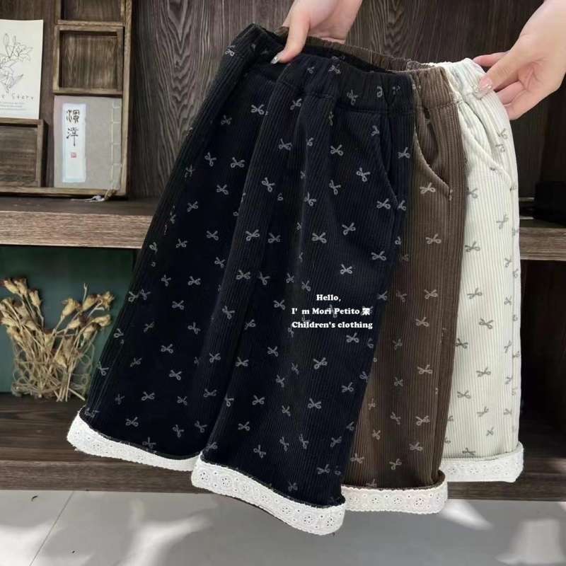 가을과 겨울을위한 소녀 코듀로이 기모 스트레이트 다리 바지 달콤한 활 레이스 스트레이트 벨벳 넓은 다리 바지스토어 가기