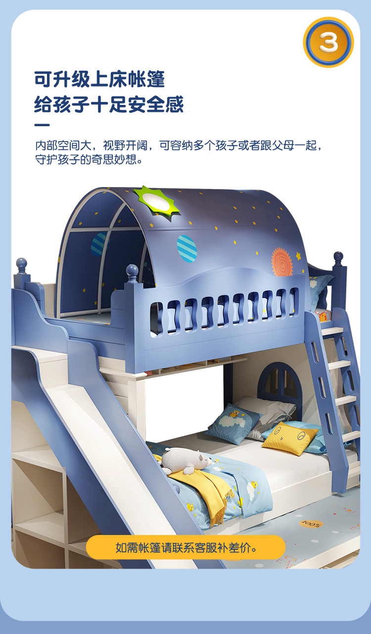 • 이층 침대 + 견인 침대 + 푸시풀 옷장 사다리 캐비닛 + 슬라이드 + 텐트
