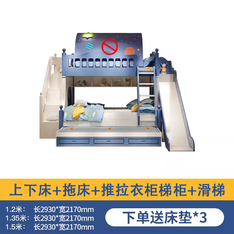 • 이층 침대 + 견인 침대 + 서랍 사다리 캐비닛 + 미끄럼틀