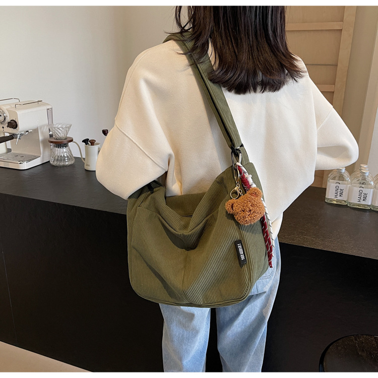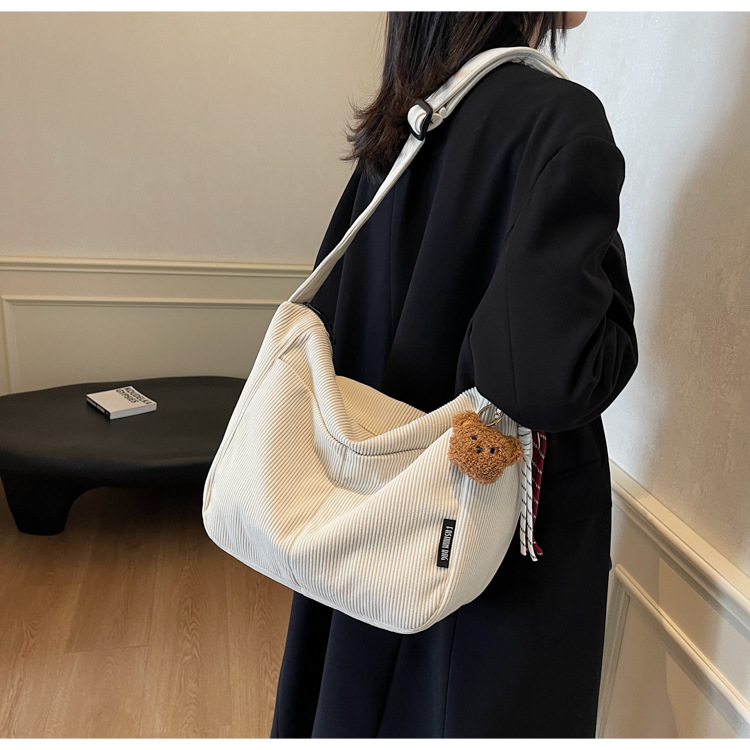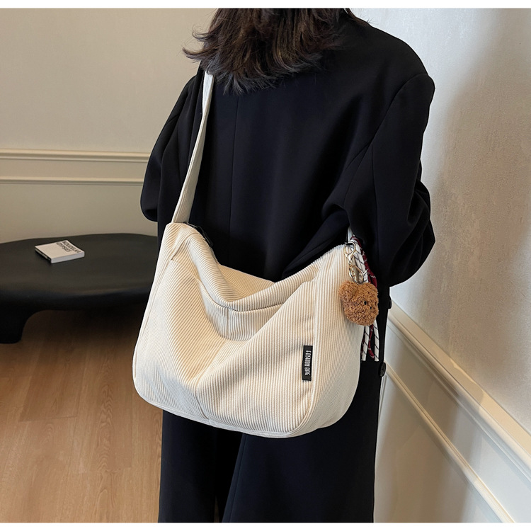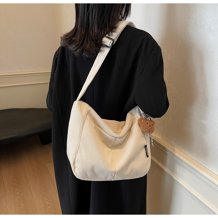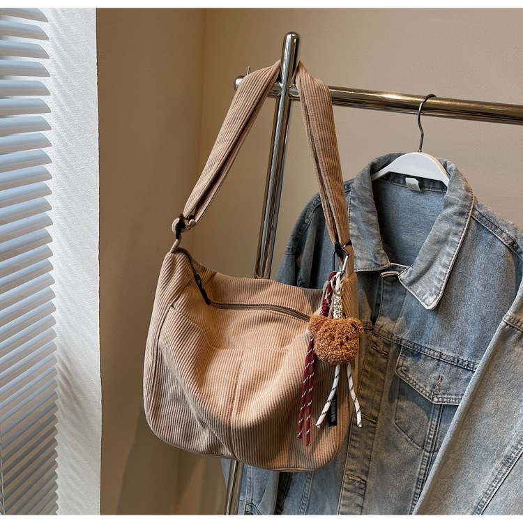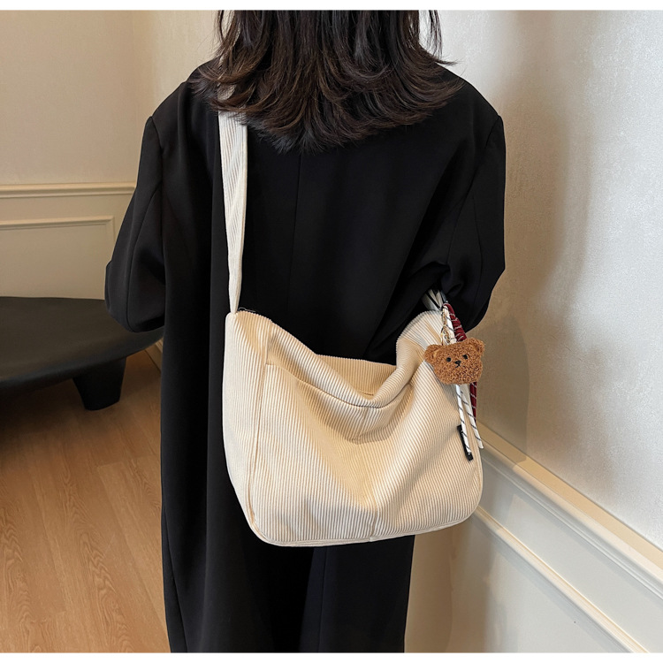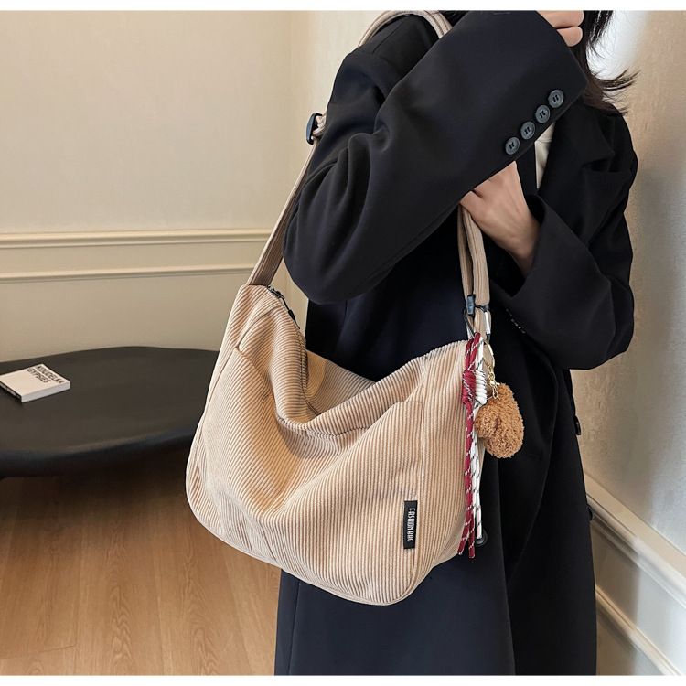 틈새 코듀로이 대형 가방 여성의 2024 가을 겨울 새로운 유행 대용량 토트 백 캐주얼 어깨 크로스 바디 백스토어 가기