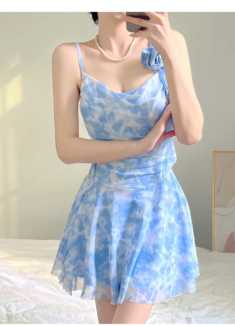 2024 민소매 블루 플로럴 스커트 원피스 새로운 온천 수영복 도매스토어 가기