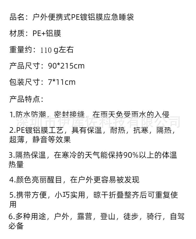 뜨거운 누르는 비상 침낭 야외 생존 장비 캠핑 봉투 침낭 오렌지 침낭 안티 더러운 습기
