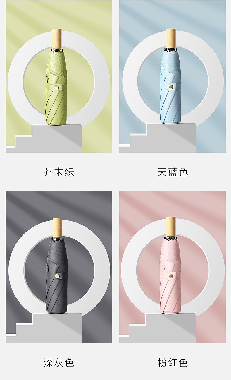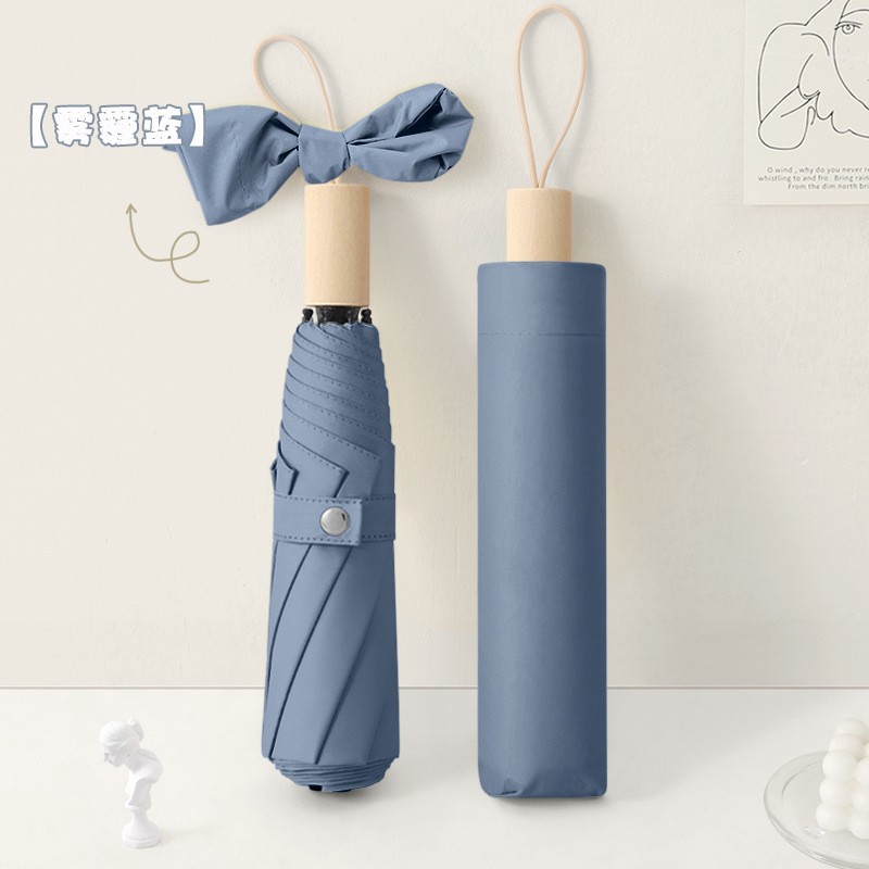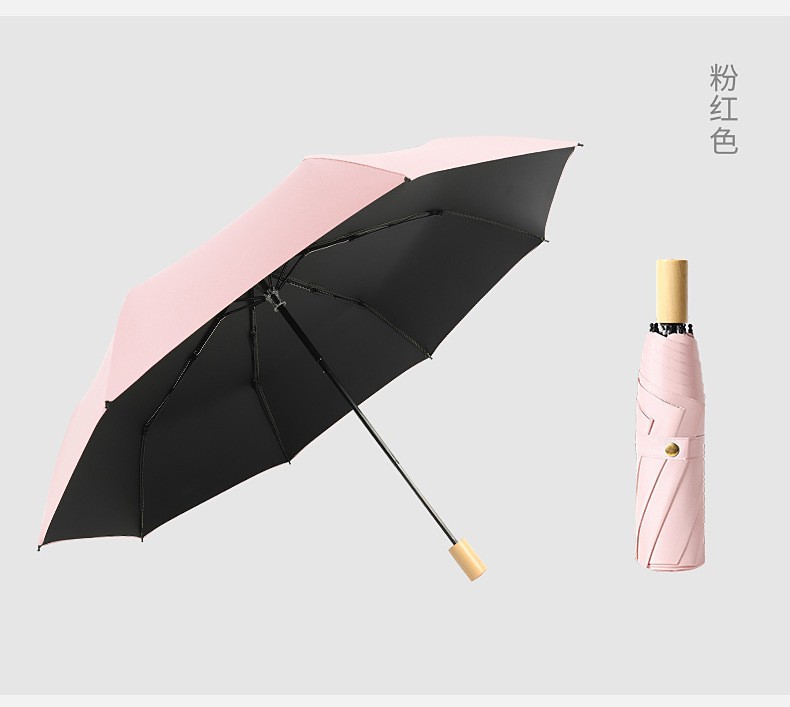 나무 손잡이 8 뼈 검은 고무 접히는 태양 우산 여성의 맑고 비 이중 사용 양산 선물 광고 우산 도매 맞춤 로고
