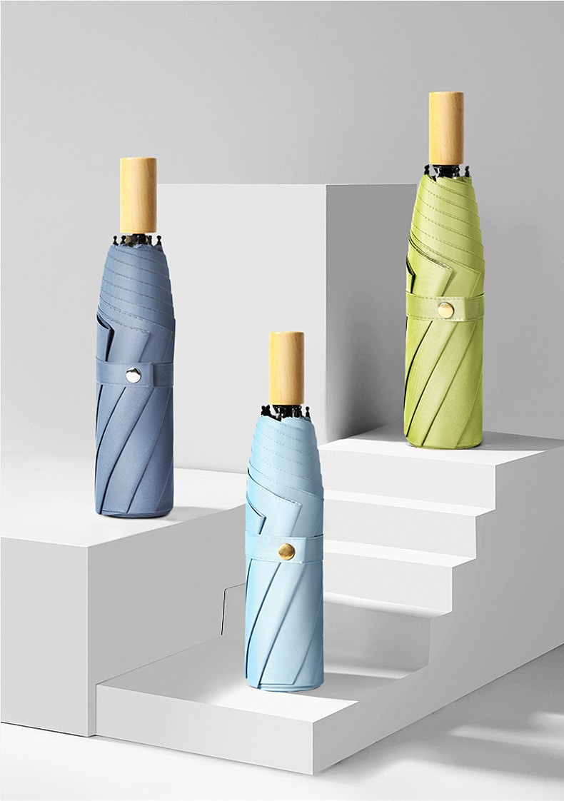 나무 손잡이 8 뼈 검은 고무 접히는 태양 우산 여성의 맑고 비 이중 사용 양산 선물 광고 우산 도매 맞춤 로고스토어 가기