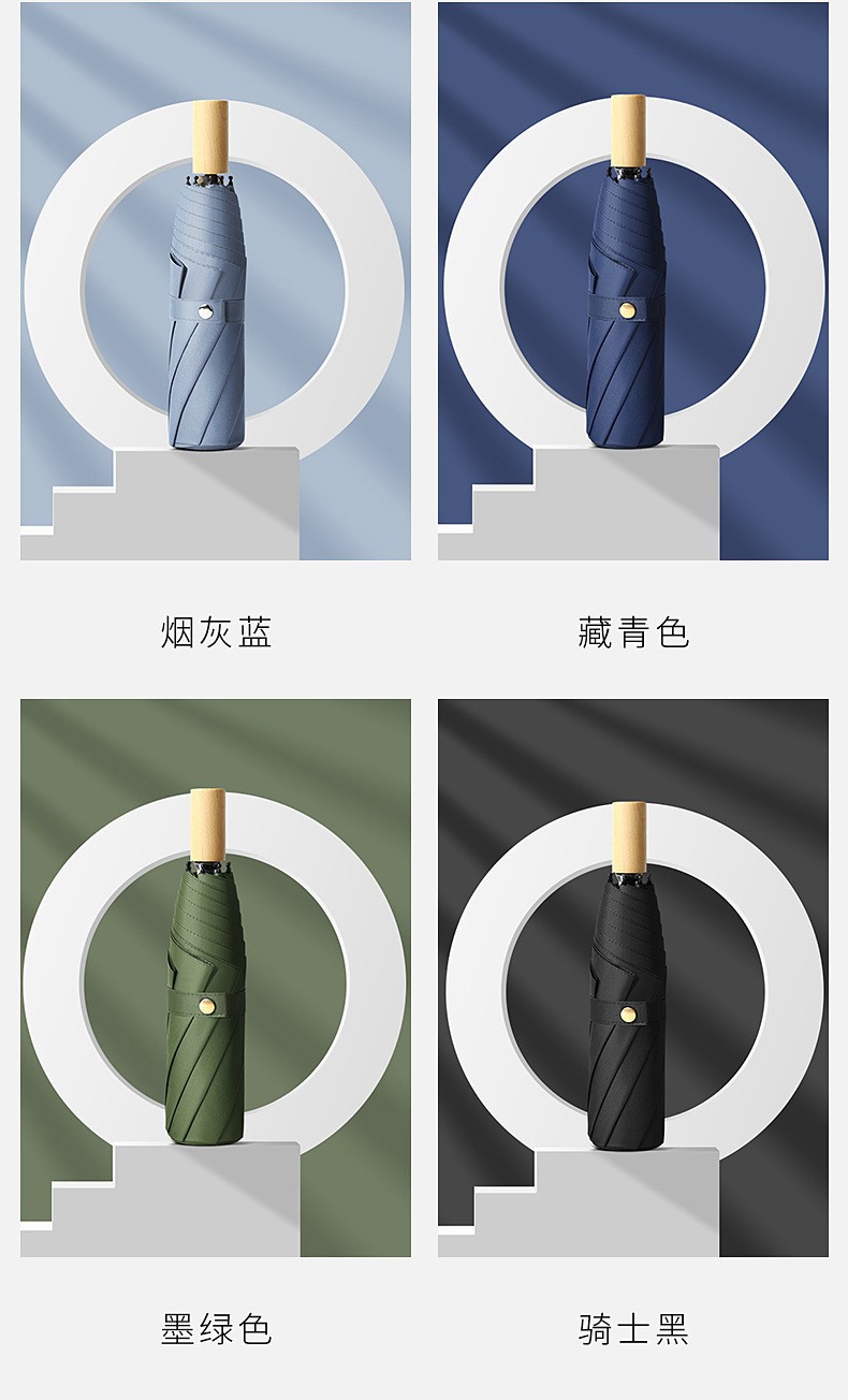 • 8본 원목 손잡이 수동 우산 - 헤이즈 블루의 Jiuhe 버전