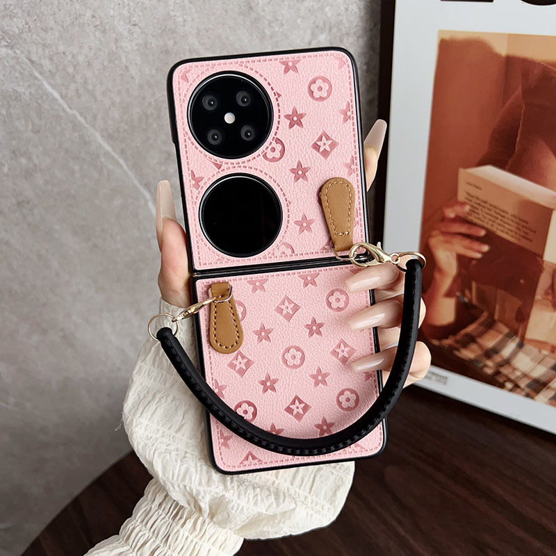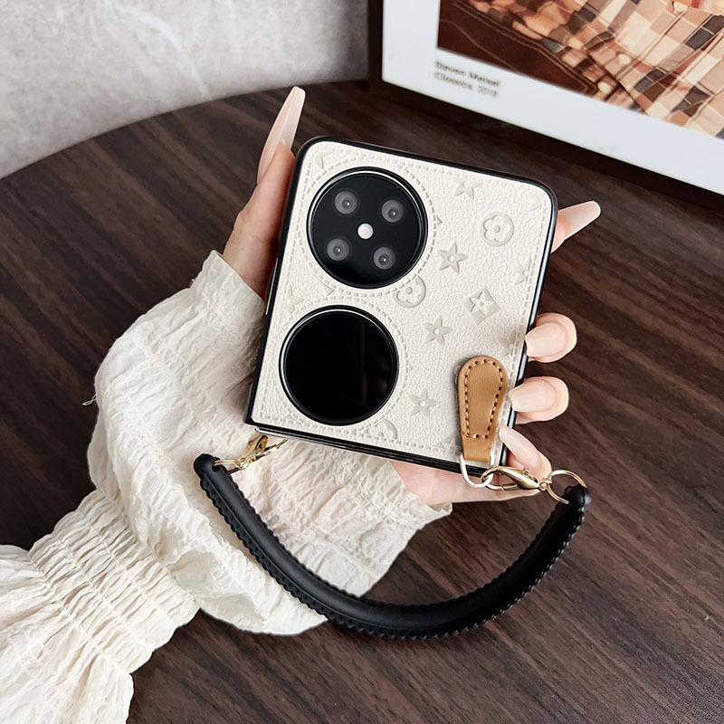 화웨이 pocket2 반지 창조적 인 가죽 화웨이 P50 주머니 접히는 스크린 전화 케이스에 적합한 오래 된 꽃