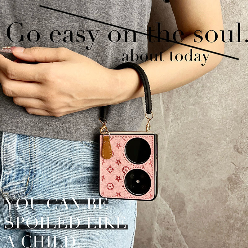 화웨이 pocket2 반지 창조적 인 가죽 화웨이 P50 주머니 접히는 스크린 전화 케이스에 적합한 오래 된 꽃스토어 가기