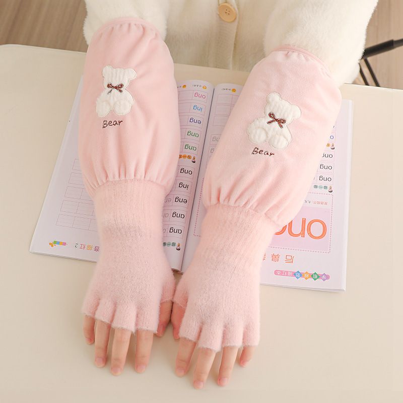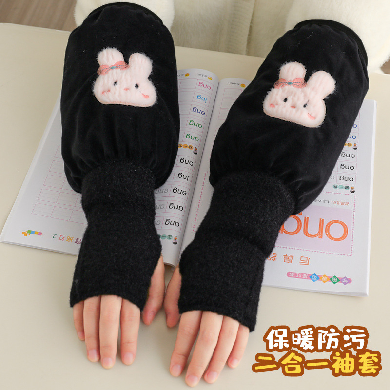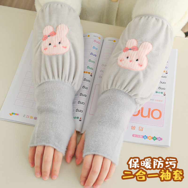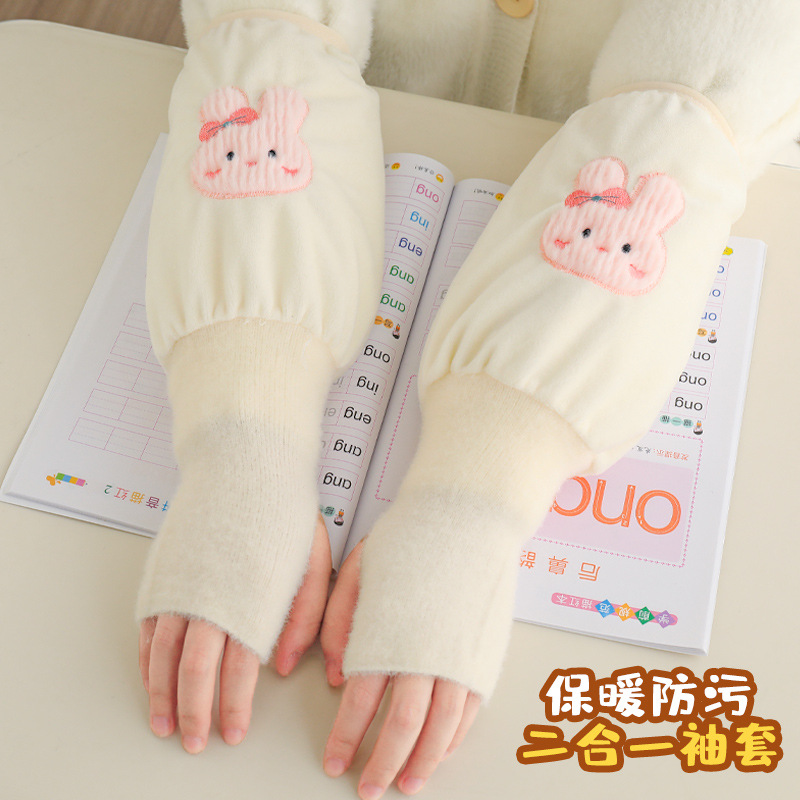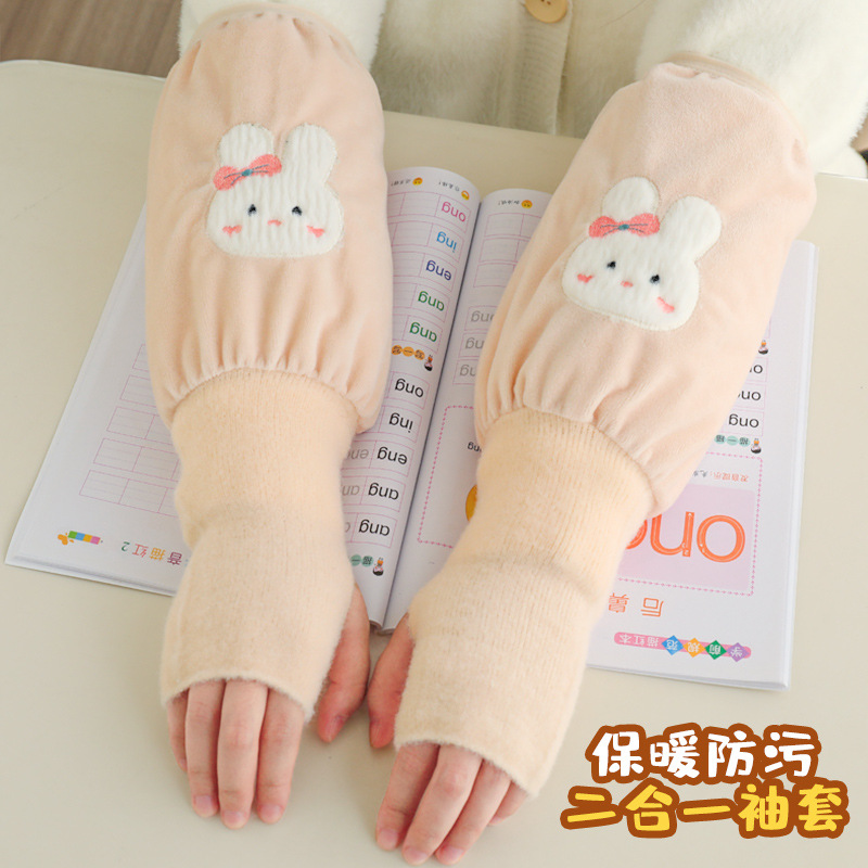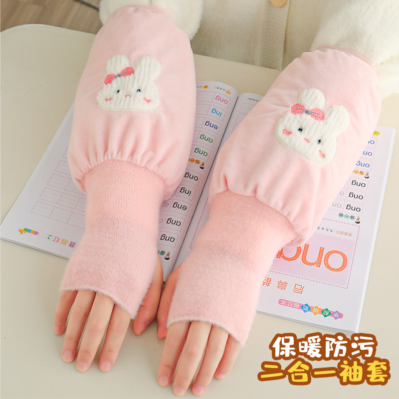 어린이 소매 장갑 2 대 1 가을과 겨울 귀여운 소녀 안티 더러운 안티 얼룩 따뜻한 학생 손 따뜻한 소매 장갑