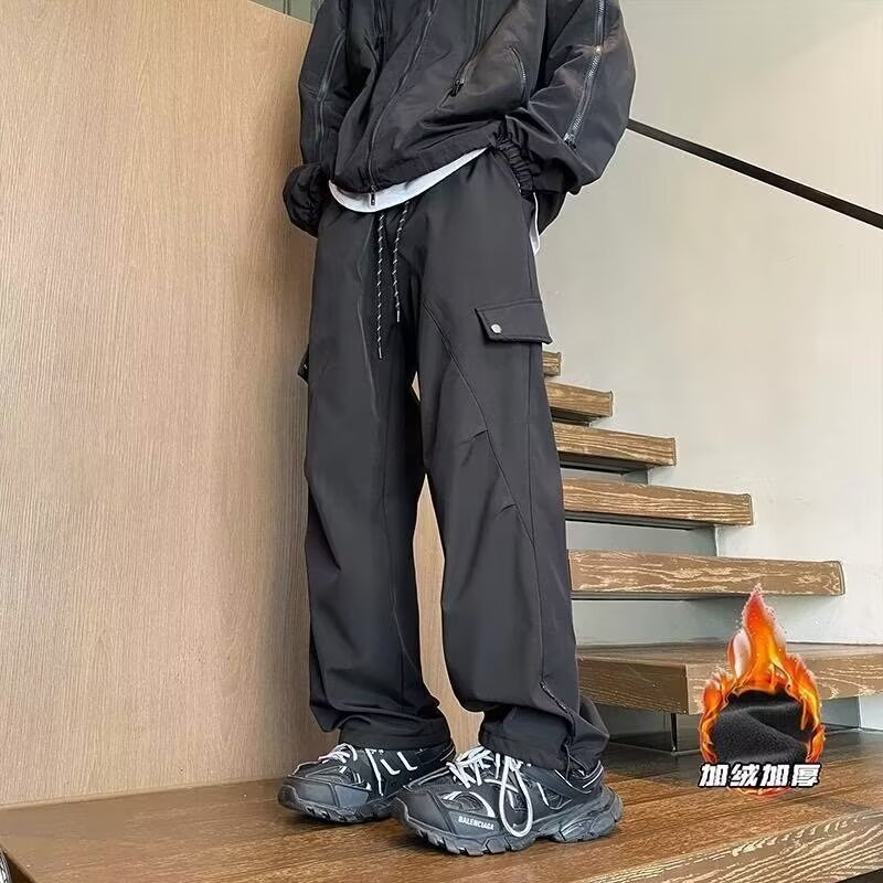 남성용 겨울 기모 따뜻한 방수 방풍 야외 등산 바지 미국 스타일 기능성 하이 스트리트 스트레이트 툴링 바지