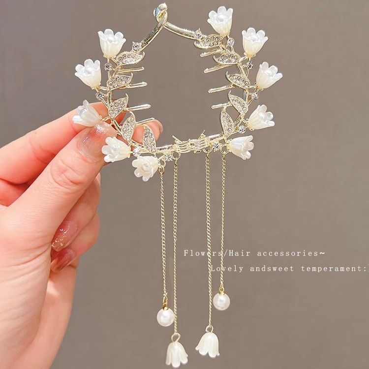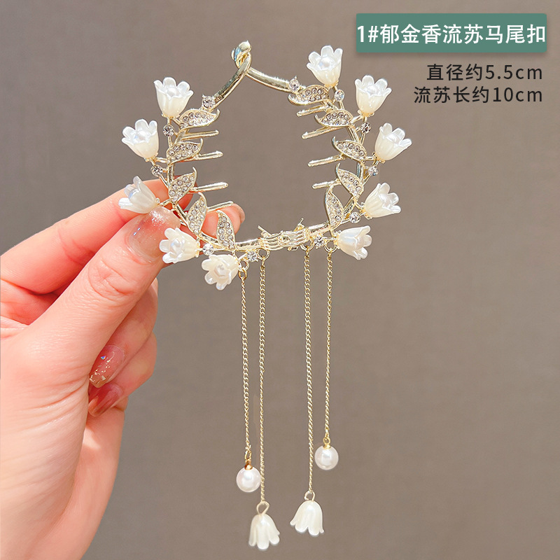 • 화이트 은방울꽃 태슬 포니테일 클립