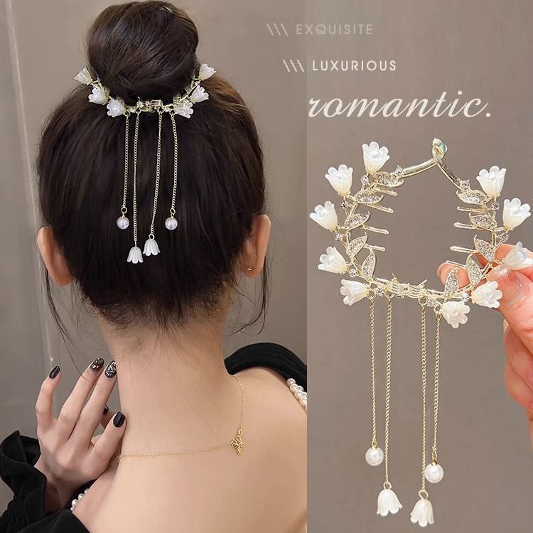 골동품 난초 술 머리핀 공 머리 고정 그랩 클립 여성의 높은 감각 머리 버클 우아한 반 넥타이 머리 잡아