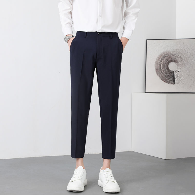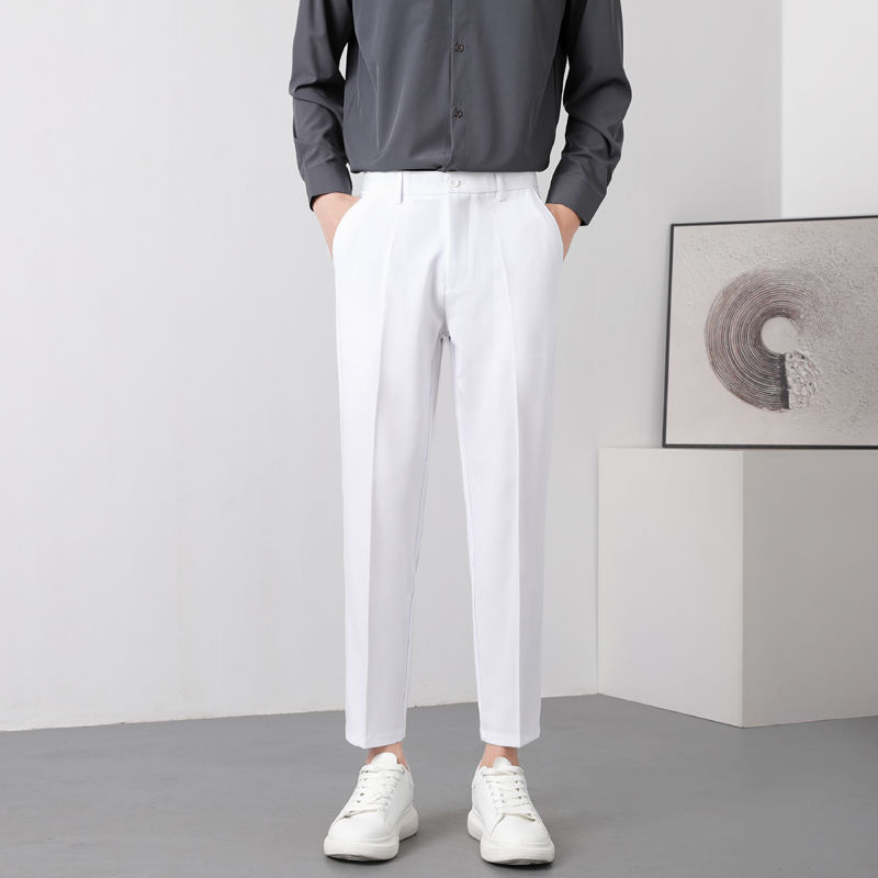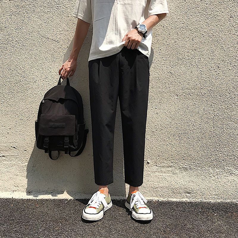 남자 봄과 여름 올 매치 팬츠, 느슨한 스트레이트 레그 슬리밍 9 포인트 캐주얼 아이스 실크 바지 바지스토어 가기