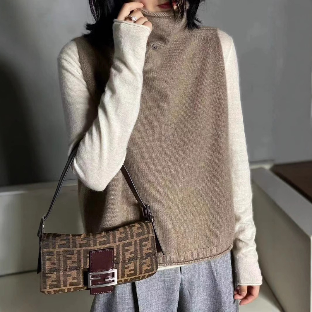 가을과 겨울 높은 칼라 순수한 양모 조끼 여성용 니트 왁스 코트 느슨한 슬리밍 플러스 사이즈 민소매 베이스 스웨터스토어 가기