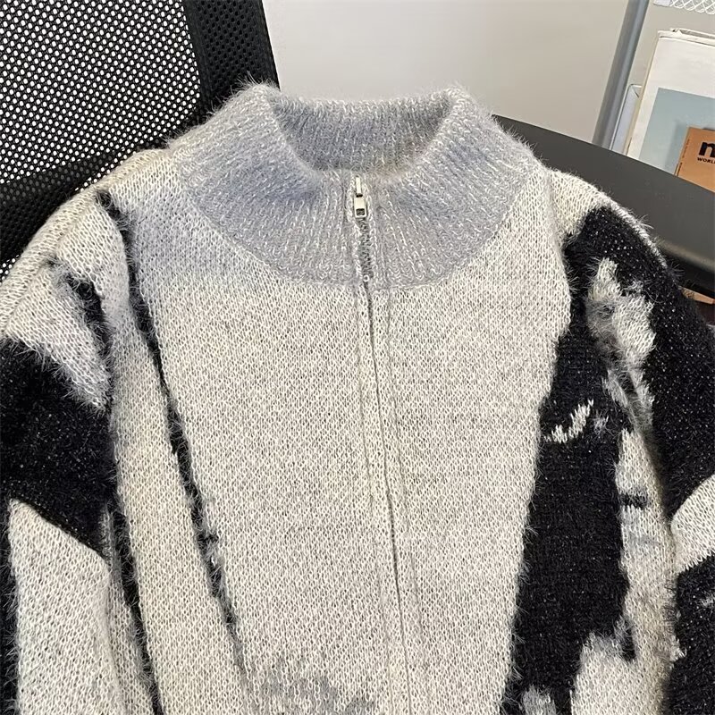 2024 가을과 겨울 새로운 카디건 스웨터 미국 복고풍 캐주얼 게으른 스타일 V 넥 스웨터 남성용 단색 코트