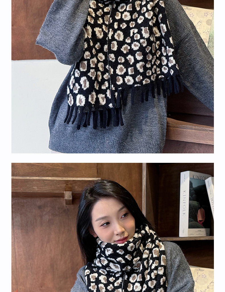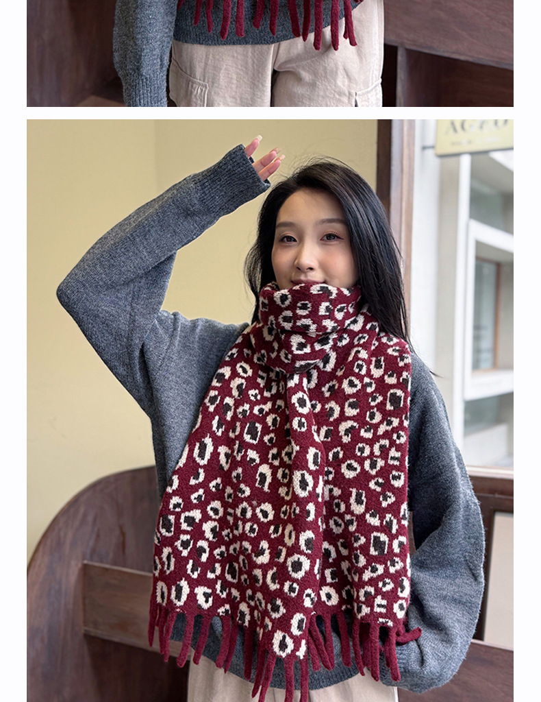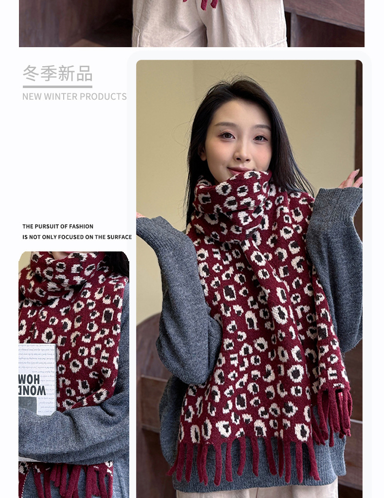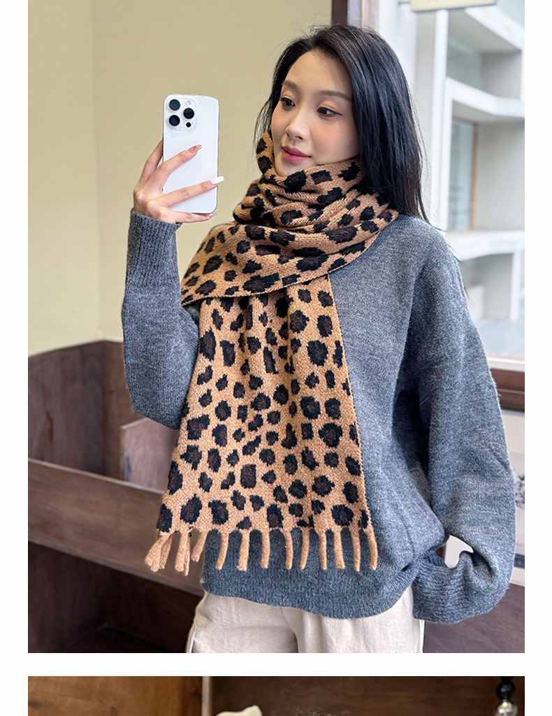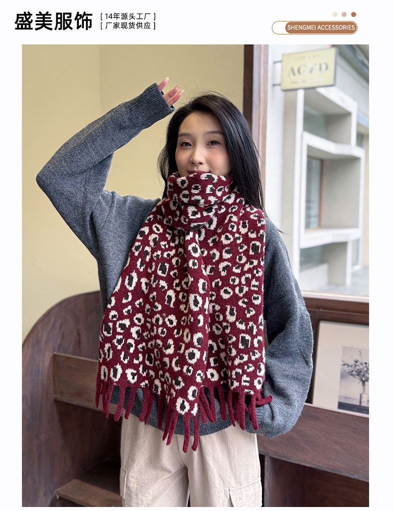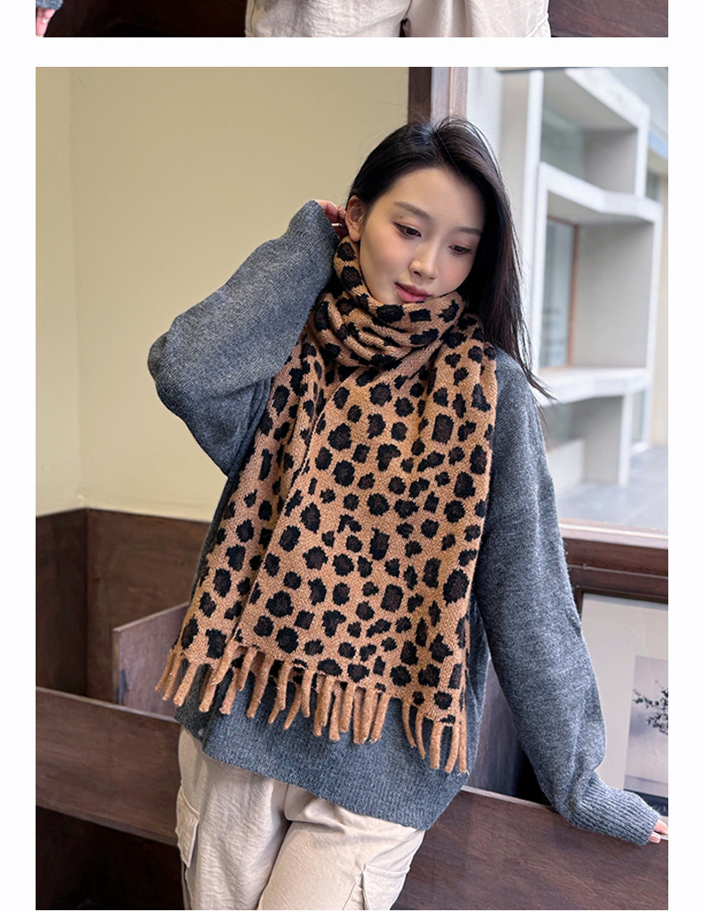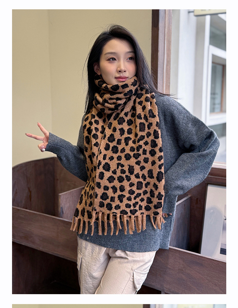 새로운 한국 스타일 레트로 울 레오파드 술 스카프 여성 겨울 공장 재고 커플 따뜻한 목 목도리