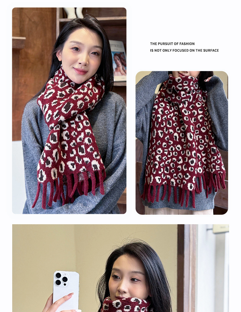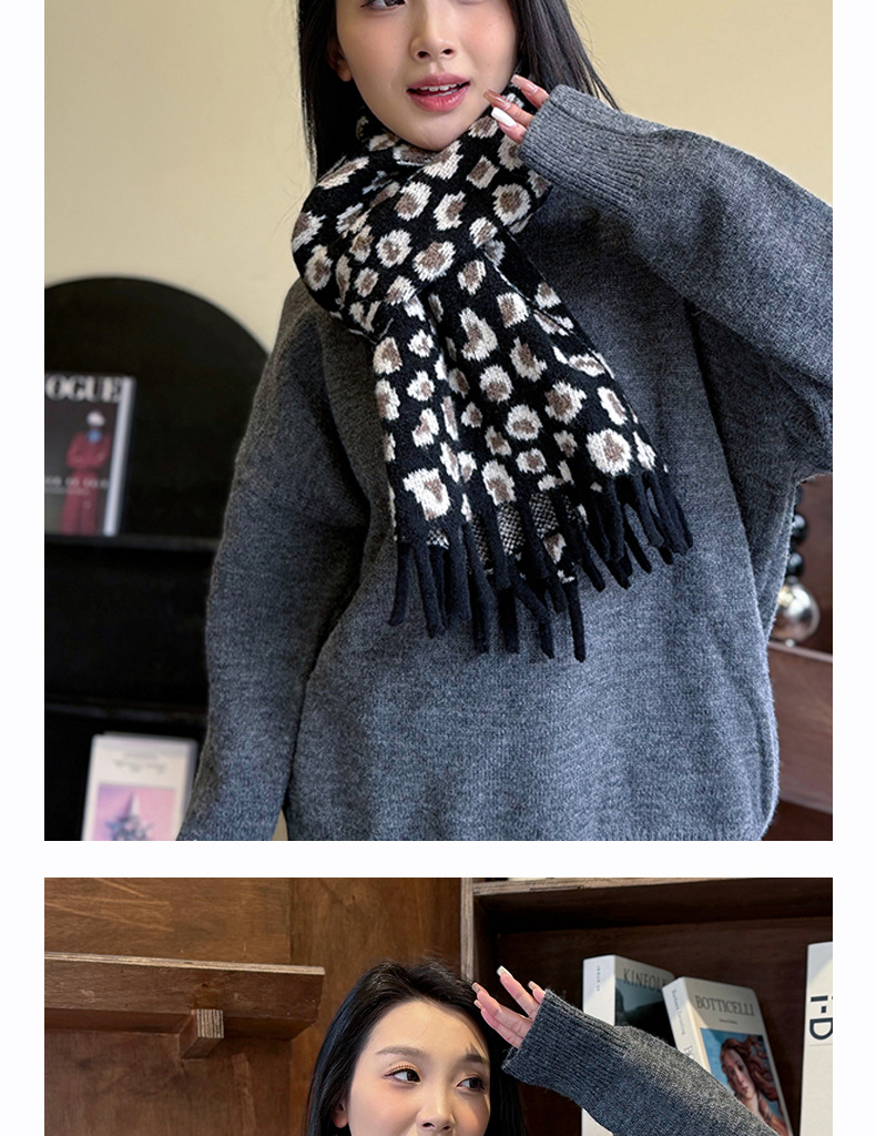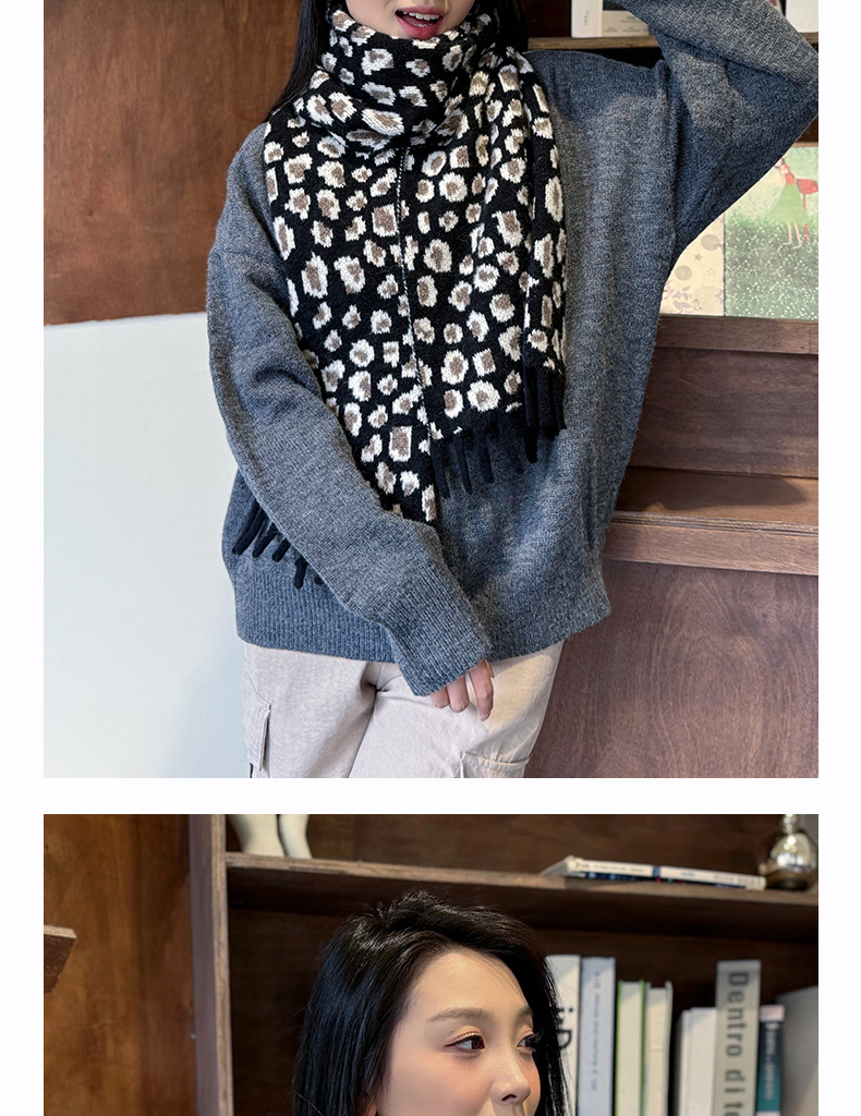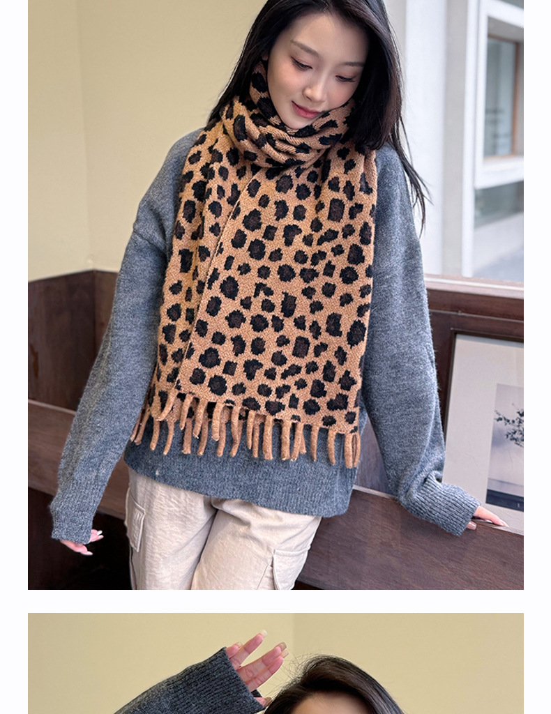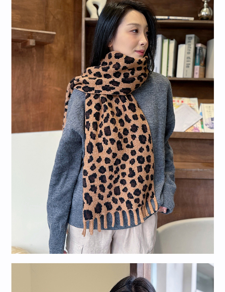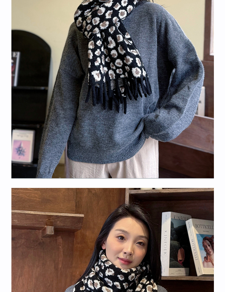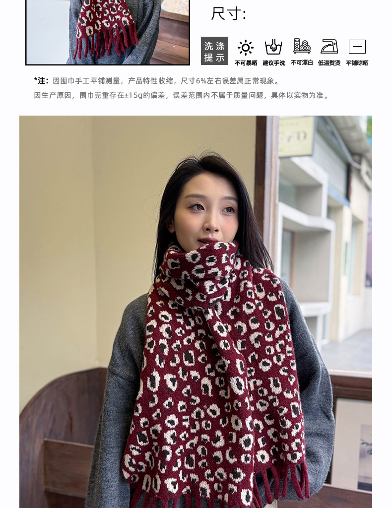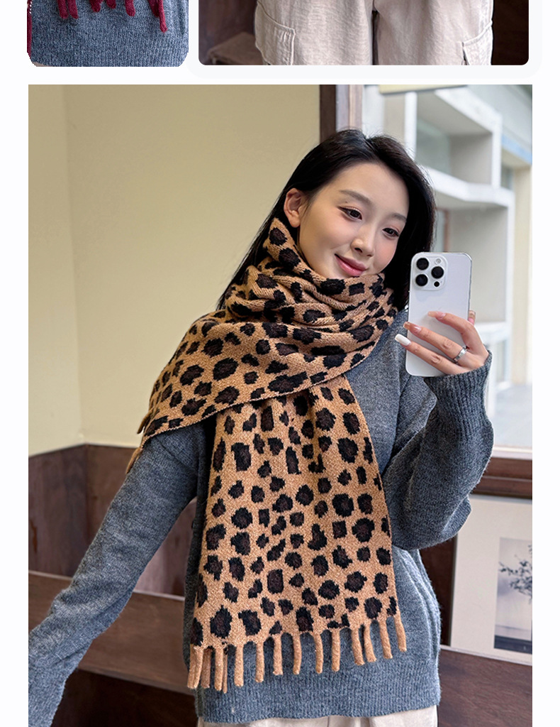 새로운 한국 스타일 레트로 울 레오파드 술 스카프 여성 겨울 공장 재고 커플 따뜻한 목 목도리