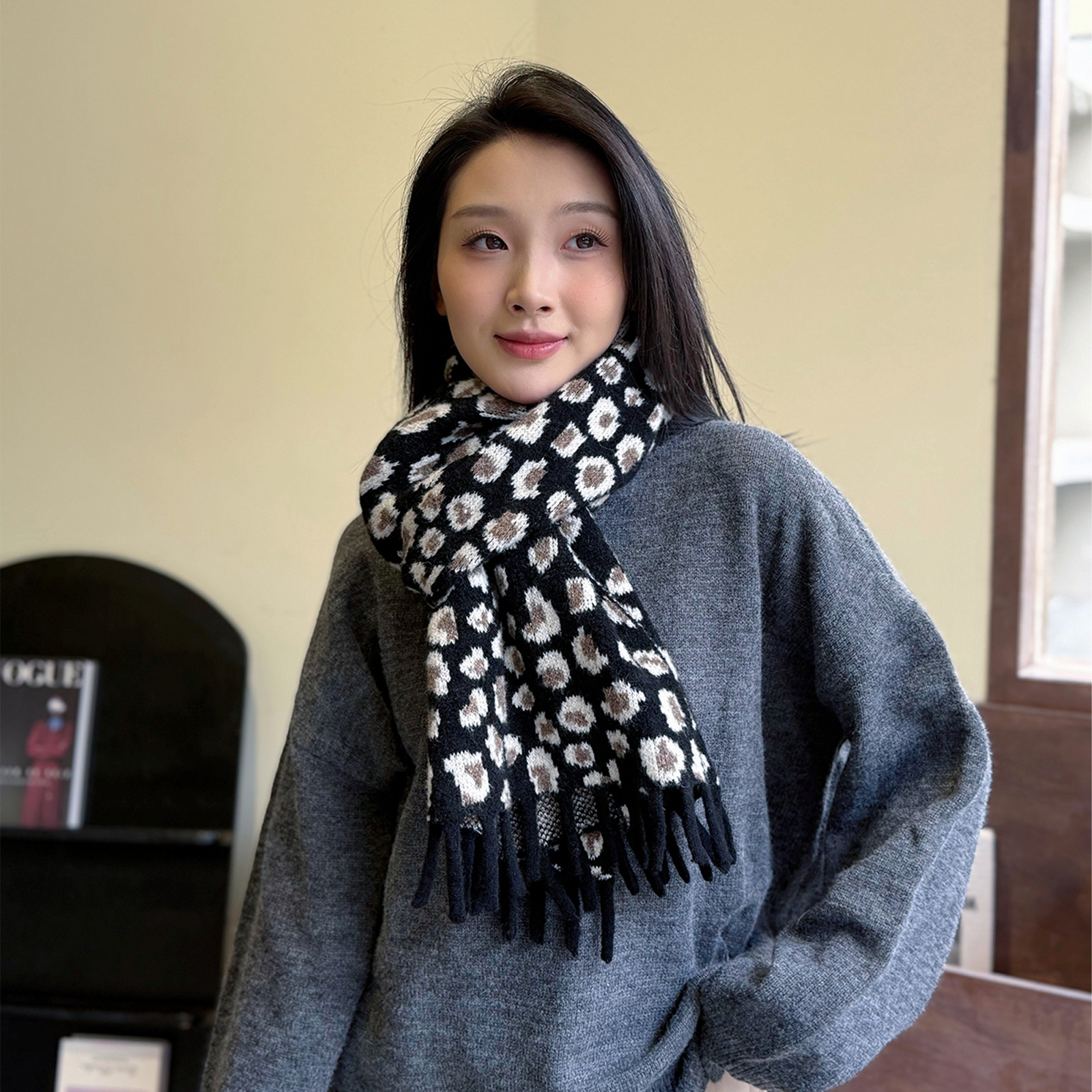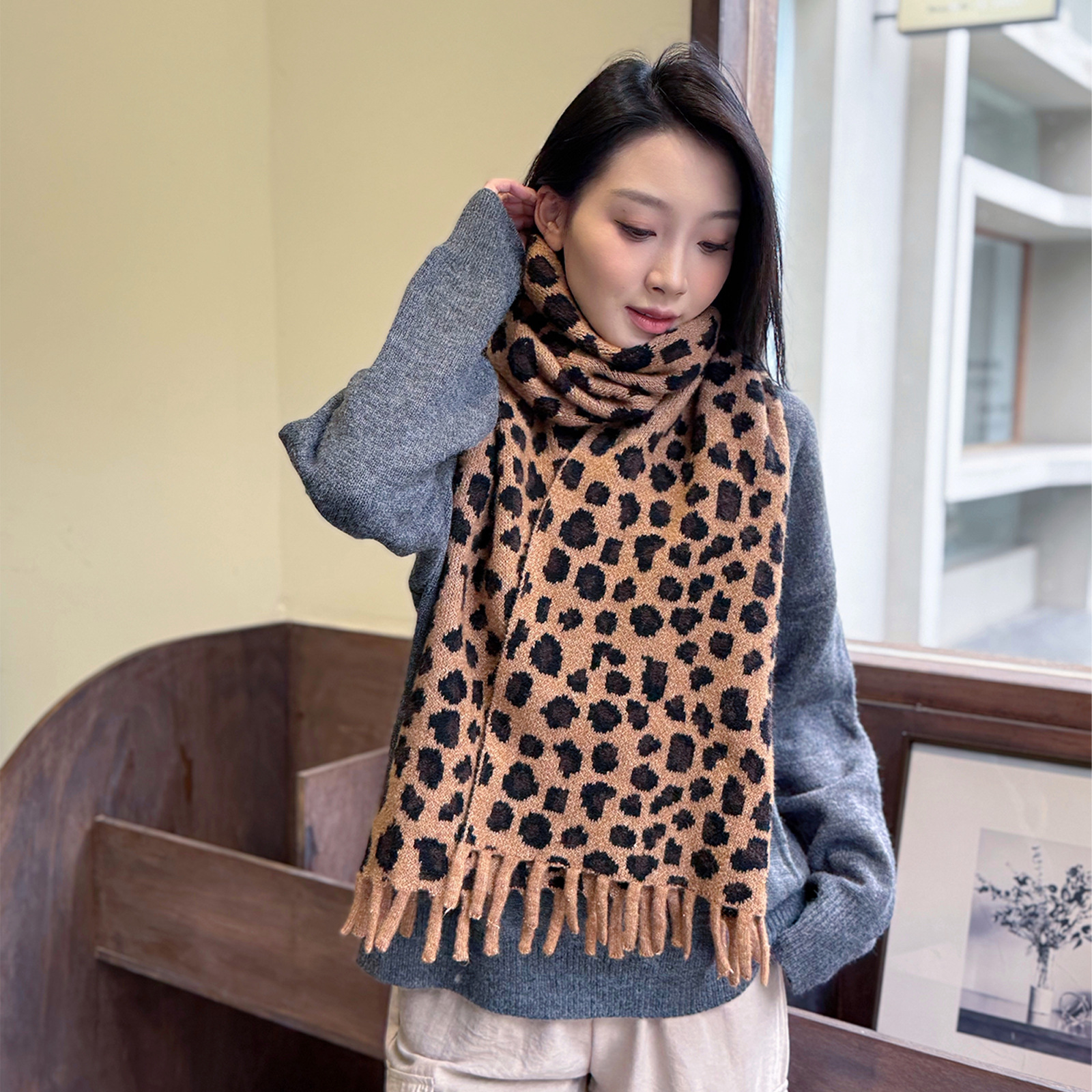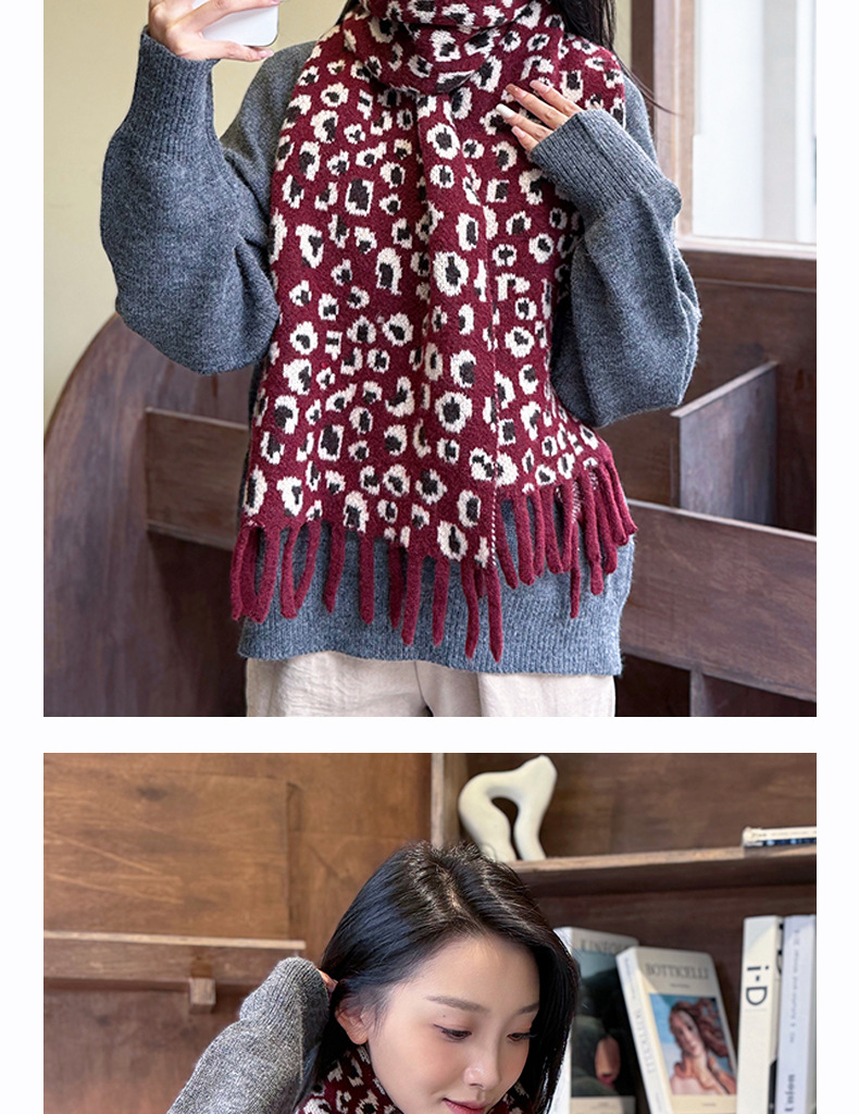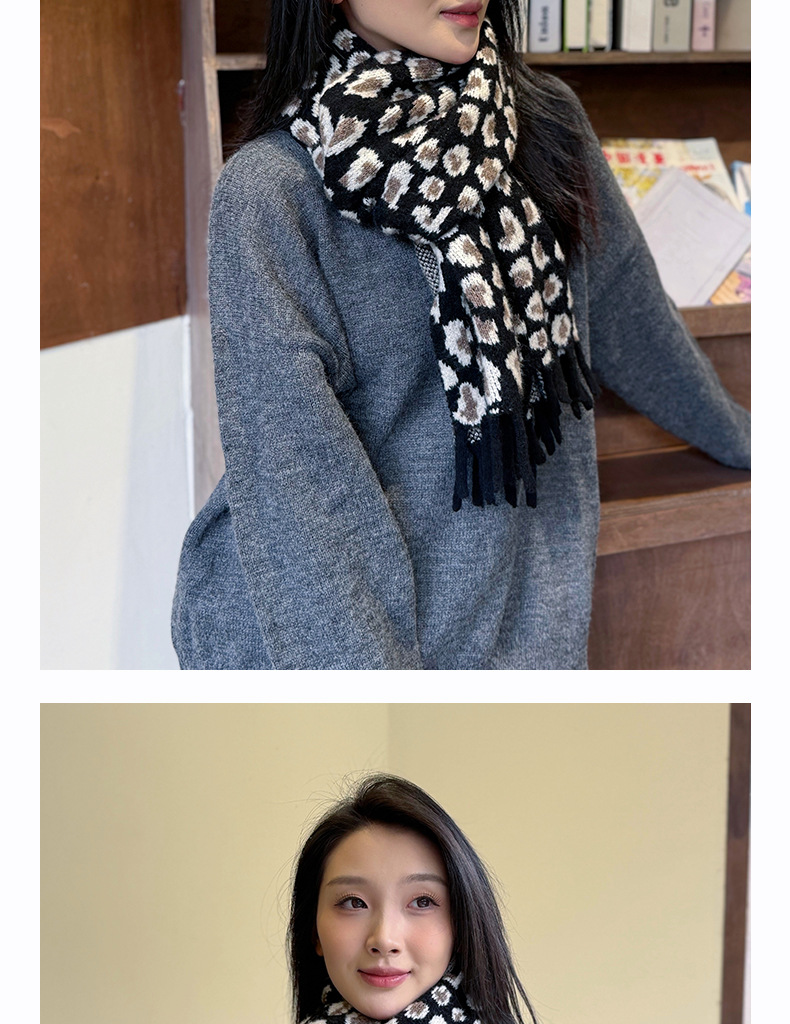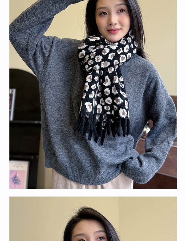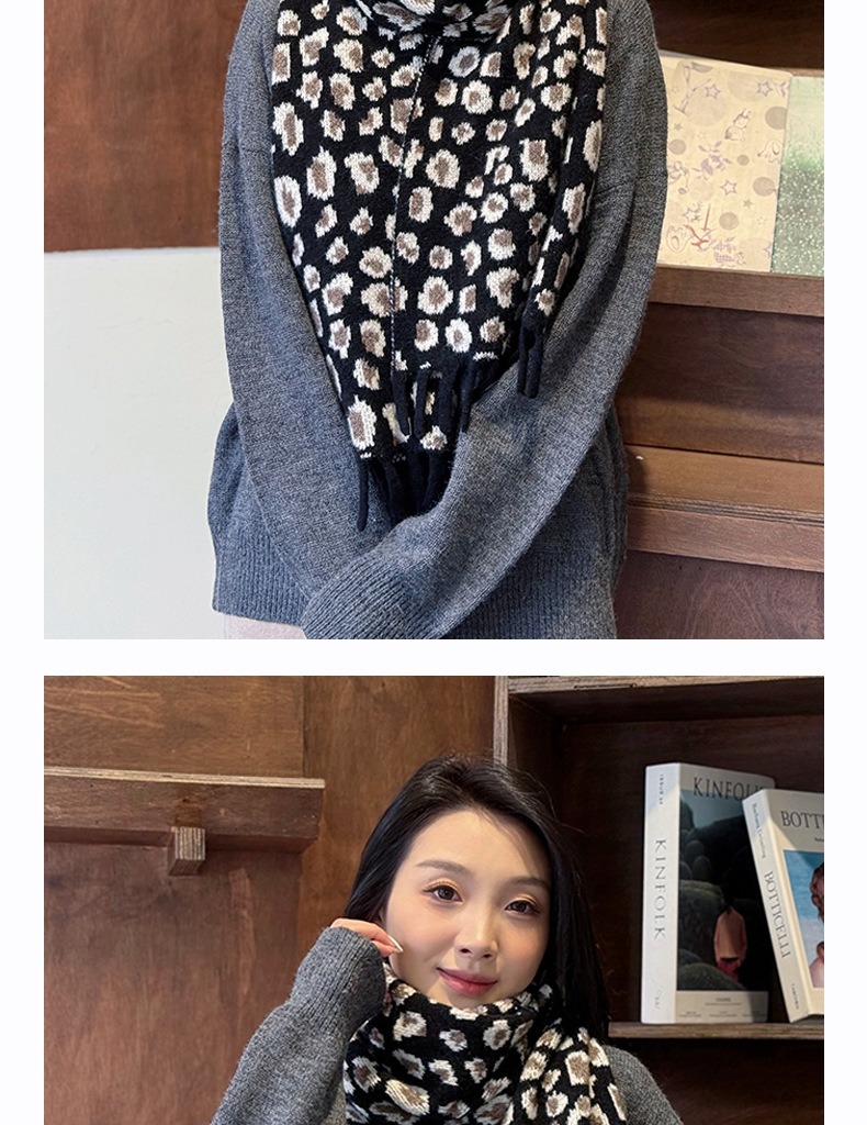 새로운 한국 스타일 레트로 울 레오파드 술 스카프 여성 겨울 공장 재고 커플 따뜻한 목 목도리