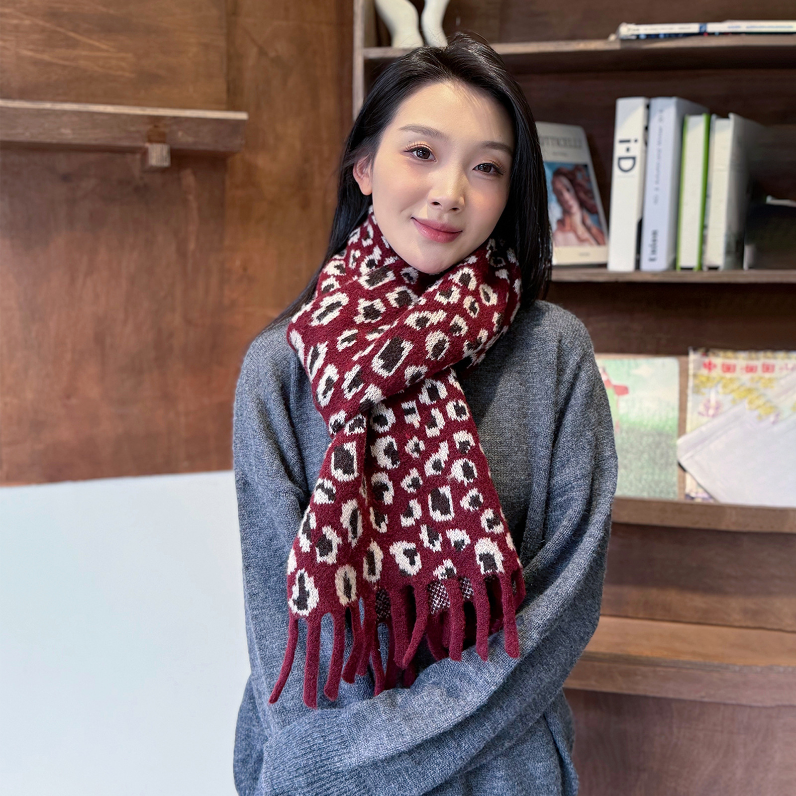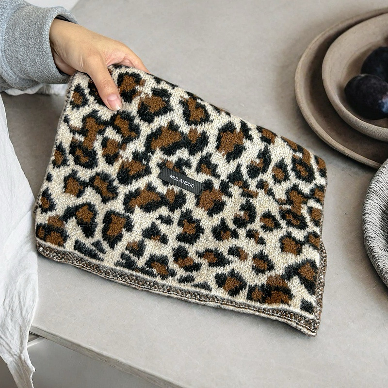 새로운 한국 스타일 레트로 울 레오파드 술 스카프 여성 겨울 공장 재고 커플 따뜻한 목 목도리스토어 가기