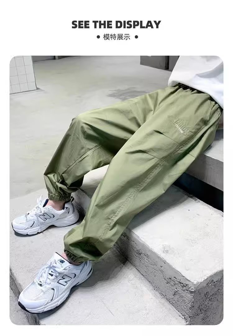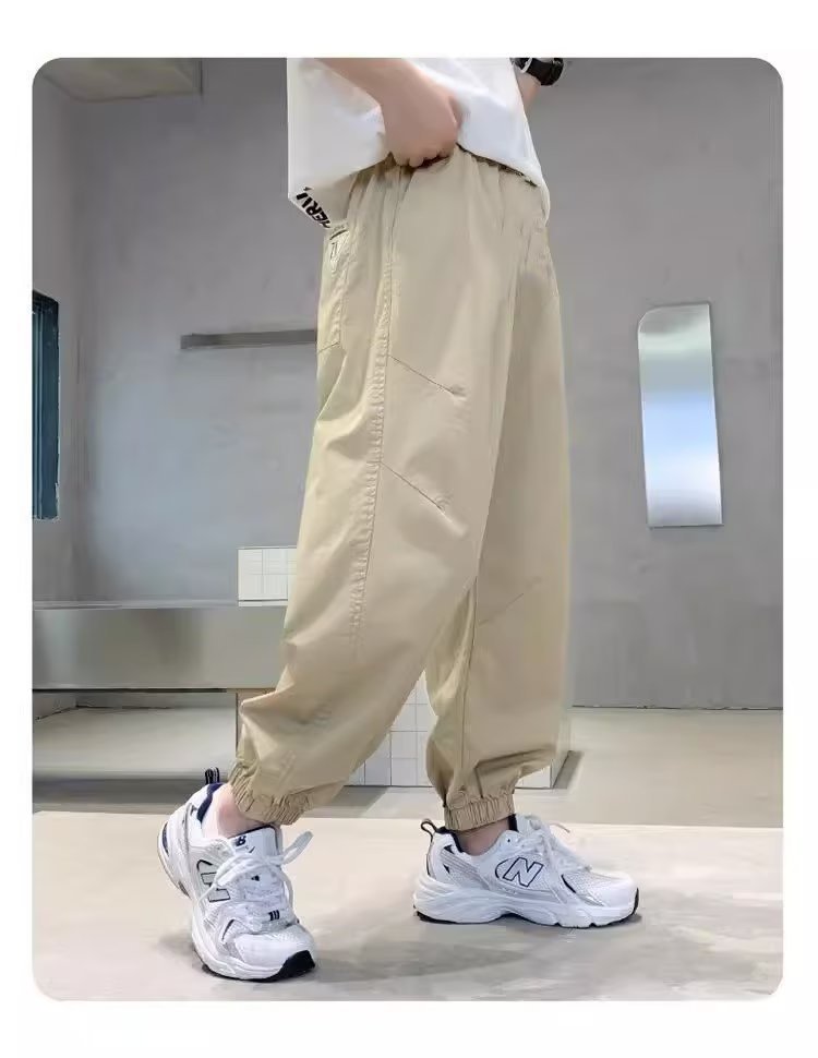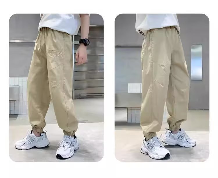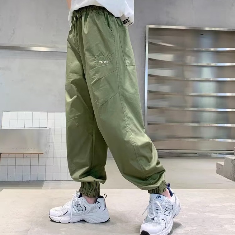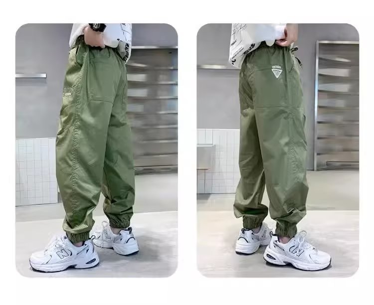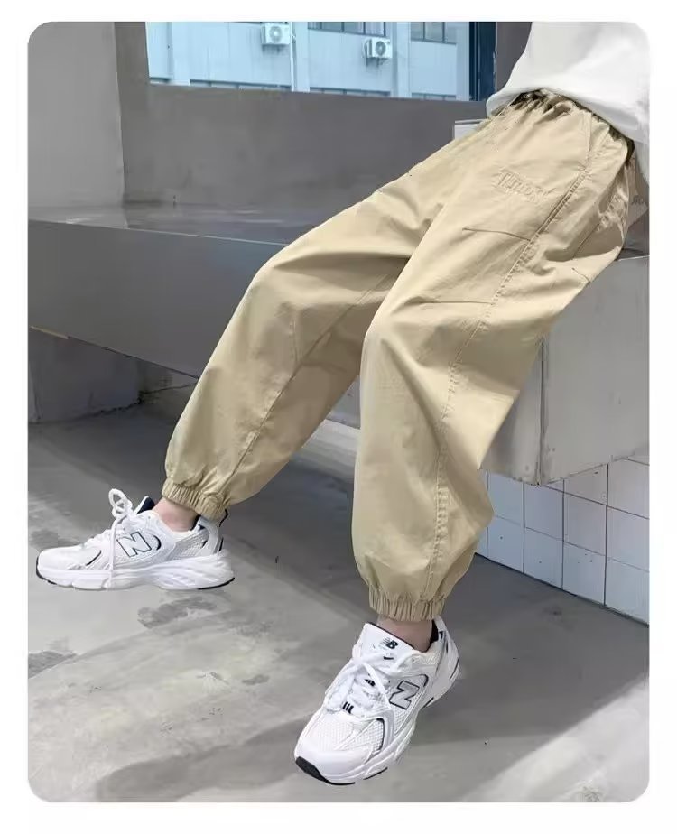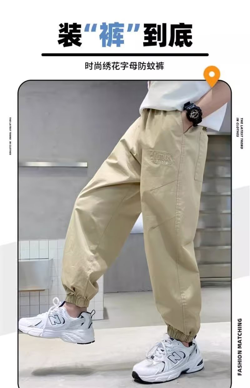 남아 여름 모기 방지 바지 2025 한국 신상 중대형 아동용 루즈핏 카키색 캐주얼 바지 남아용 긴바지 신축성스토어 가기
