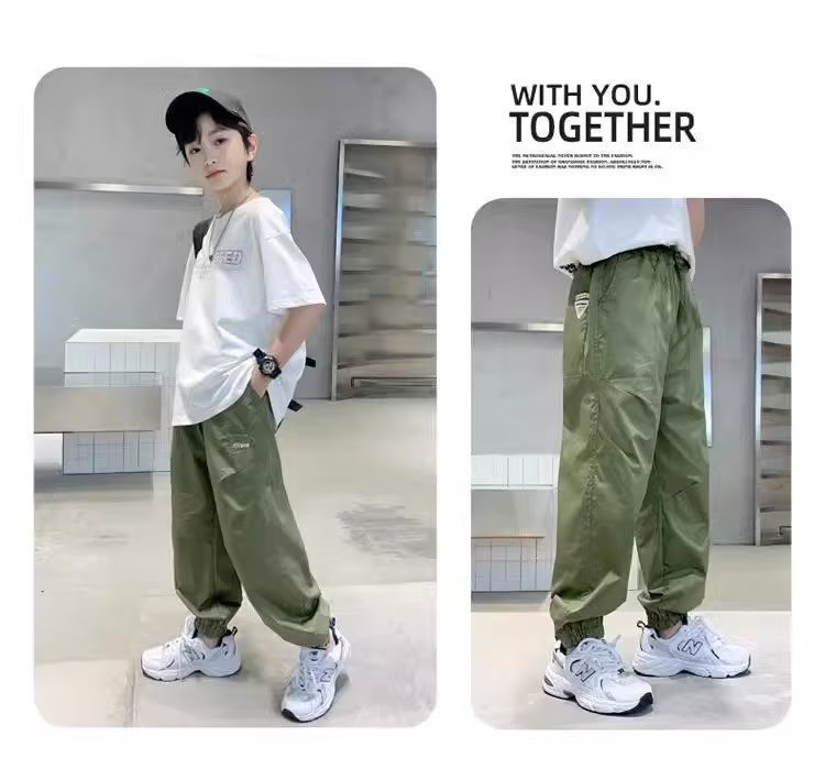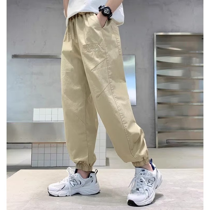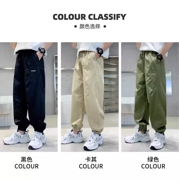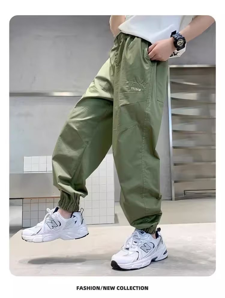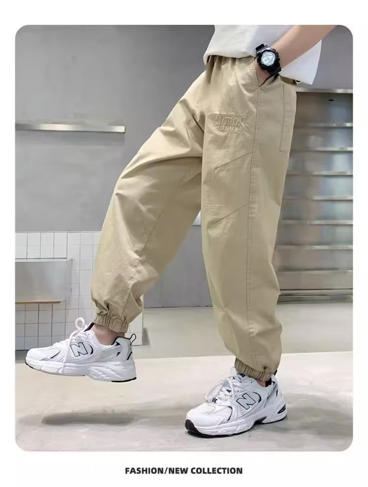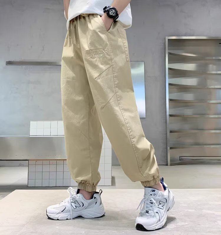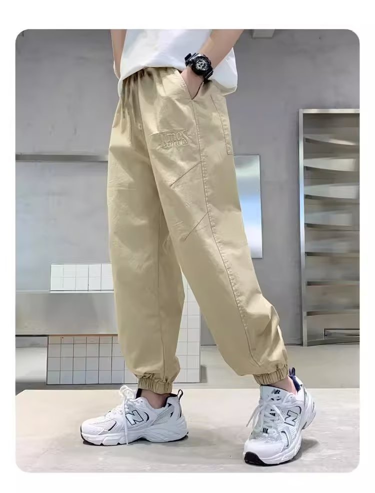 남아 여름 모기 방지 바지 2025 한국 신상 중대형 아동용 루즈핏 카키색 캐주얼 바지 남아용 긴바지 신축성스토어 가기