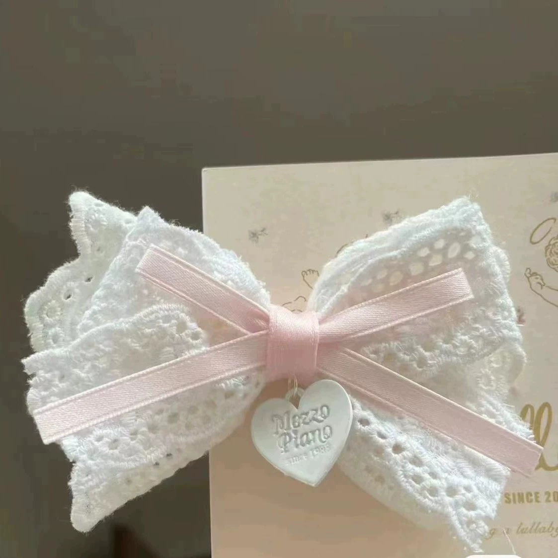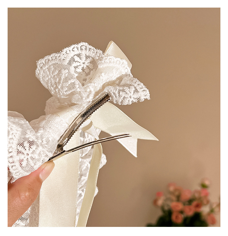레이스 패브릭 보우 덕빌 클립 헤어 밴드 여성 2024 헤어 클립 로리타 달콤한 소녀 귀여운 헤어 클립 머리 장식