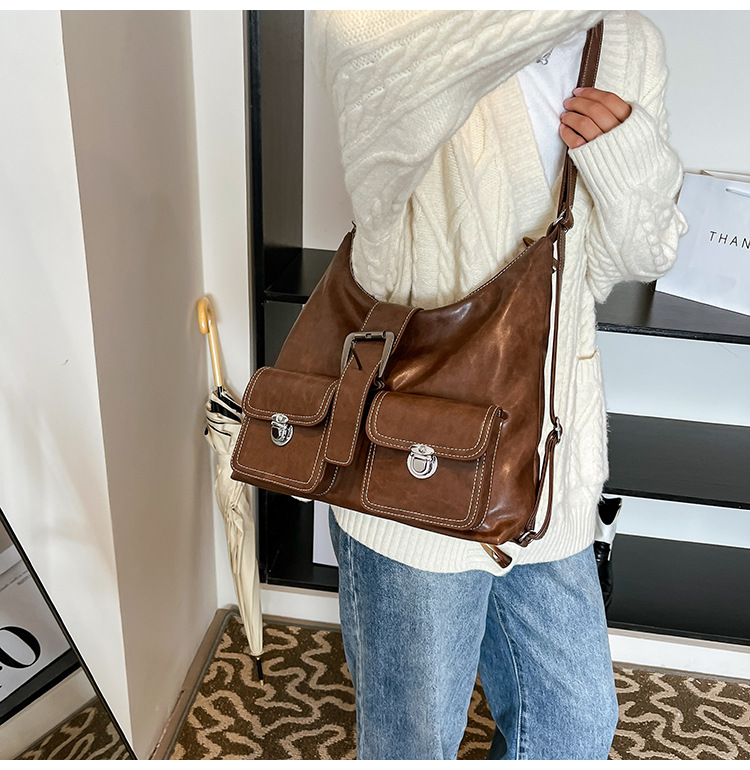 국경 간 레트로 언더 암 토트 백 여자 2024 가을 및 겨울 새로운 틈새 유행 대용량 어깨 가방 모든 경기 여자 가방스토어 가기