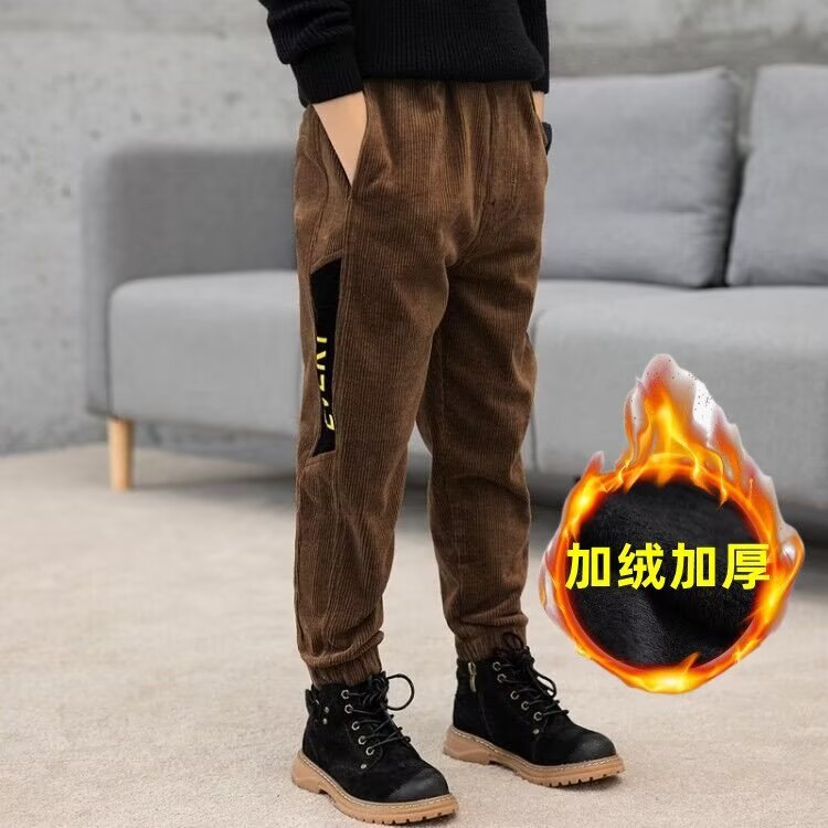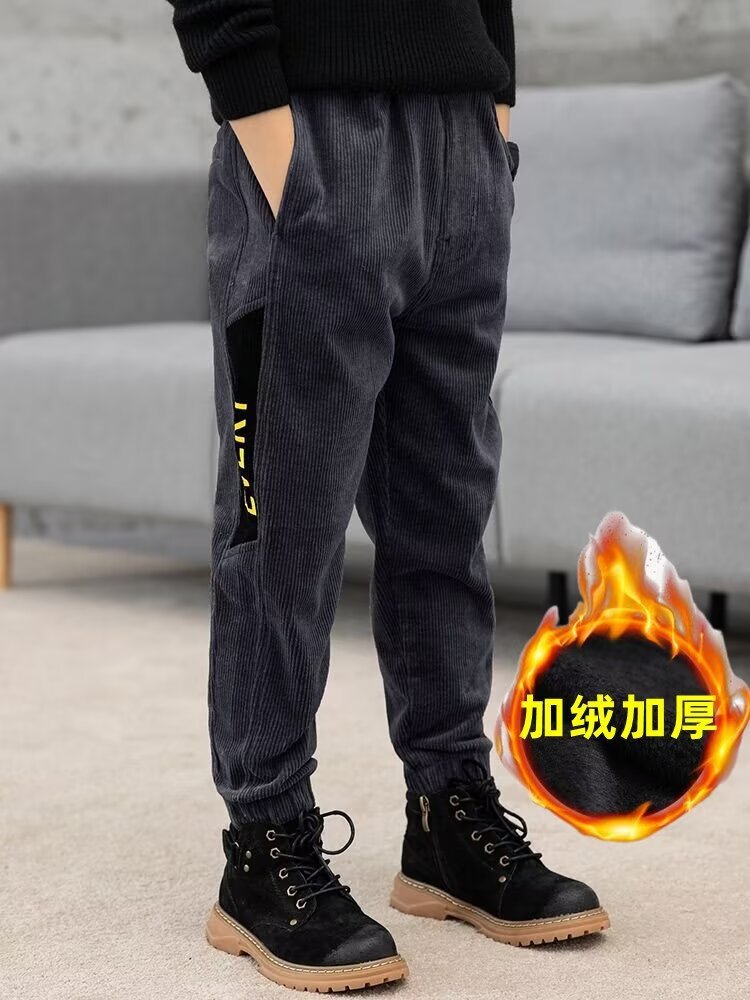 2024 가을 겨울 새 소년 바지 코듀로이 서양식 유행 캐주얼 기모 어린이 바지스토어 가기