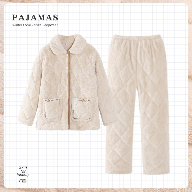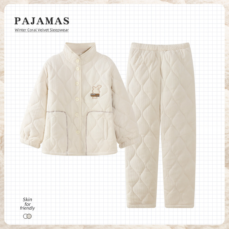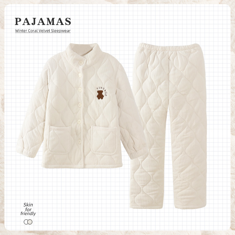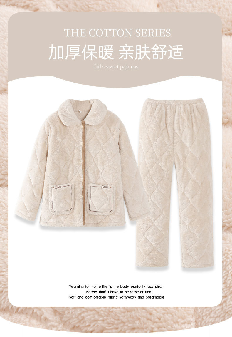 2024 새로운 도착 파자마 여성용 겨울 산호 양털 기모 3 층 퀼트 따뜻한 카디건 홈 의류 세트스토어 가기