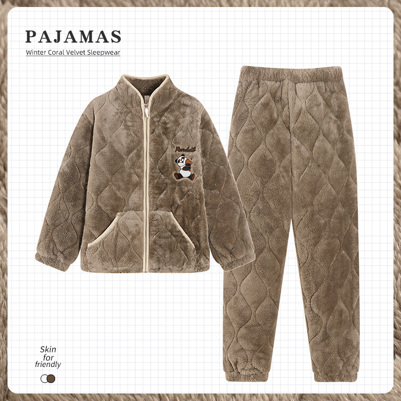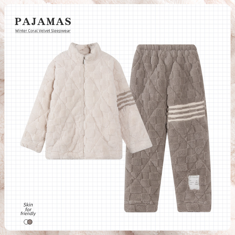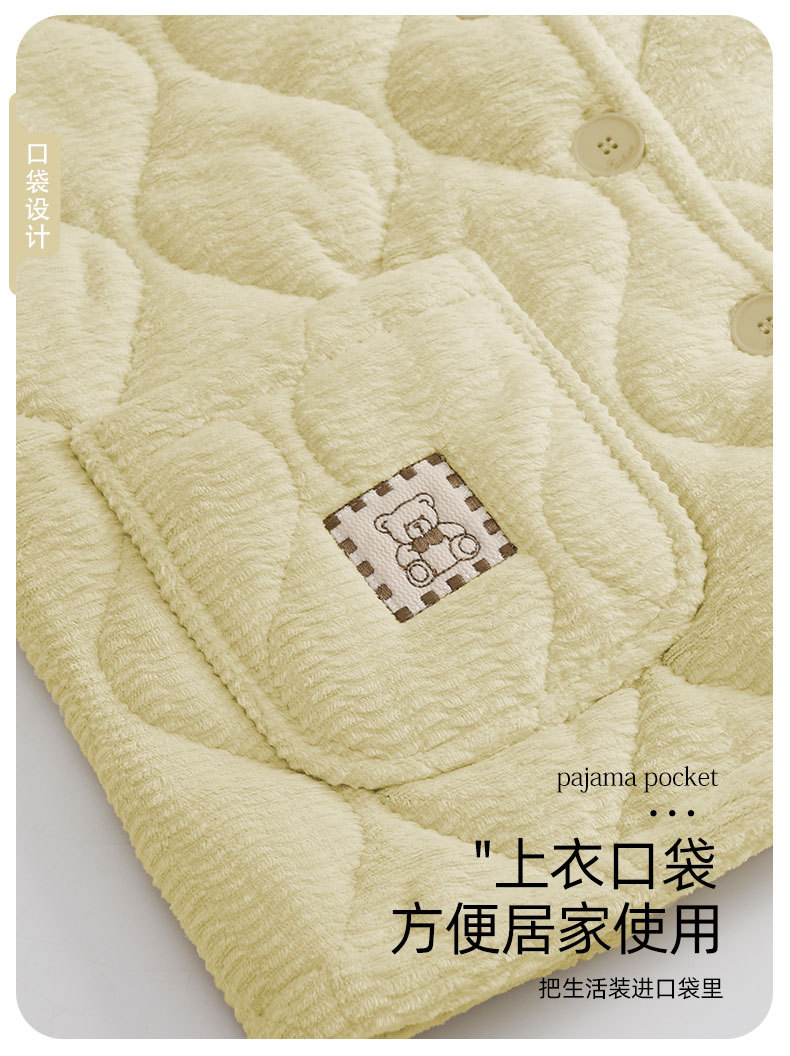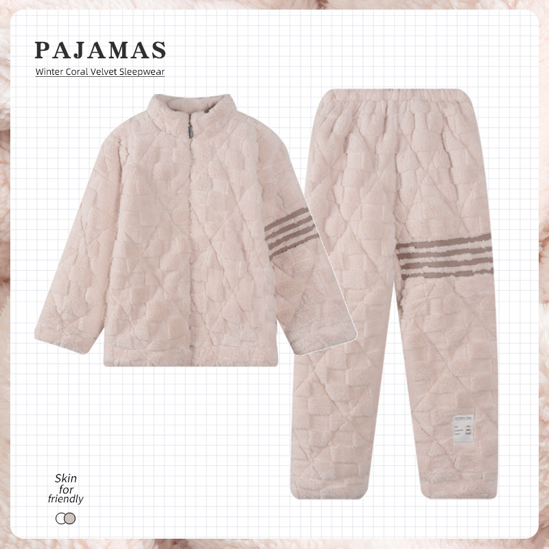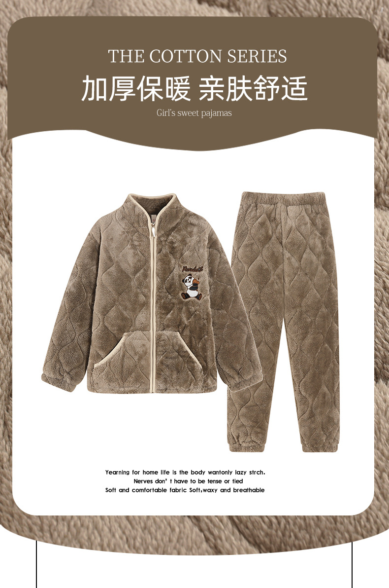 2024 새로운 도착 파자마 여성용 겨울 산호 양털 기모 3 층 퀼트 따뜻한 카디건 홈 의류 세트스토어 가기