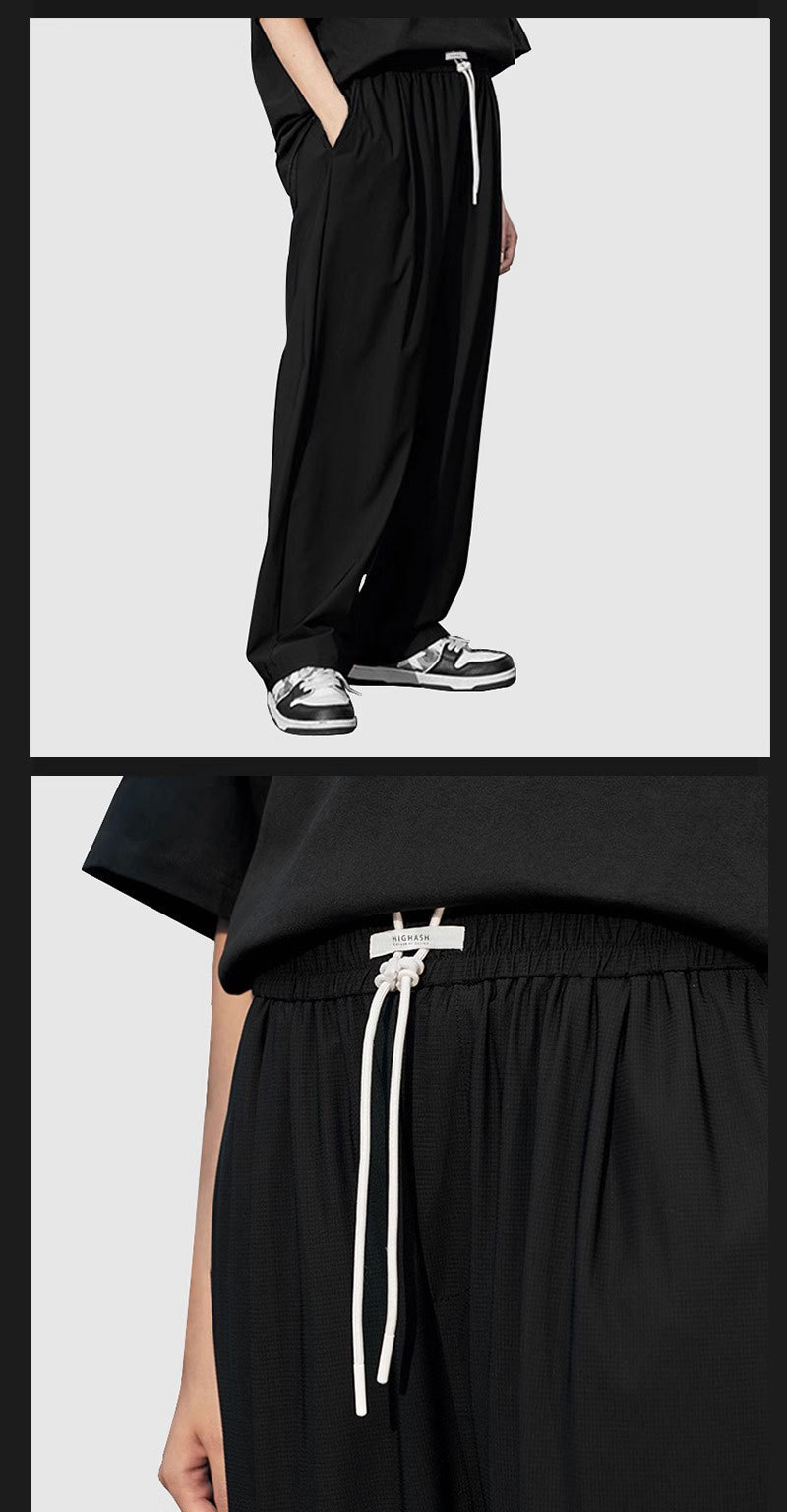 봄과 가을 2024 새로운 고급 아이스 실크 빠른 건조 포장 에어컨 패턴 질감 시원한 넓은 다리 바지 바지 바지