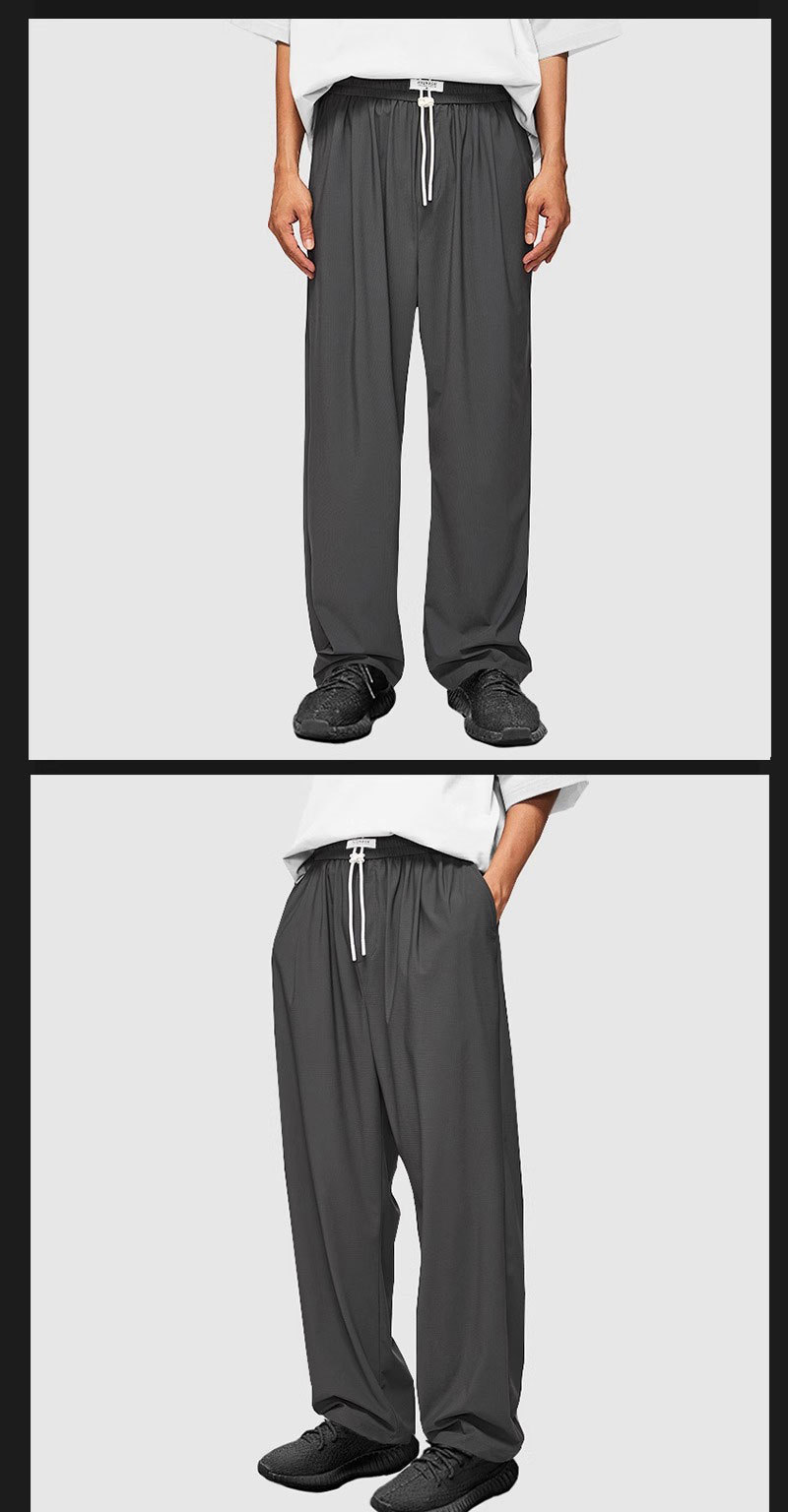 봄과 가을 2024 새로운 고급 아이스 실크 빠른 건조 포장 에어컨 패턴 질감 시원한 넓은 다리 바지 바지 바지스토어 가기