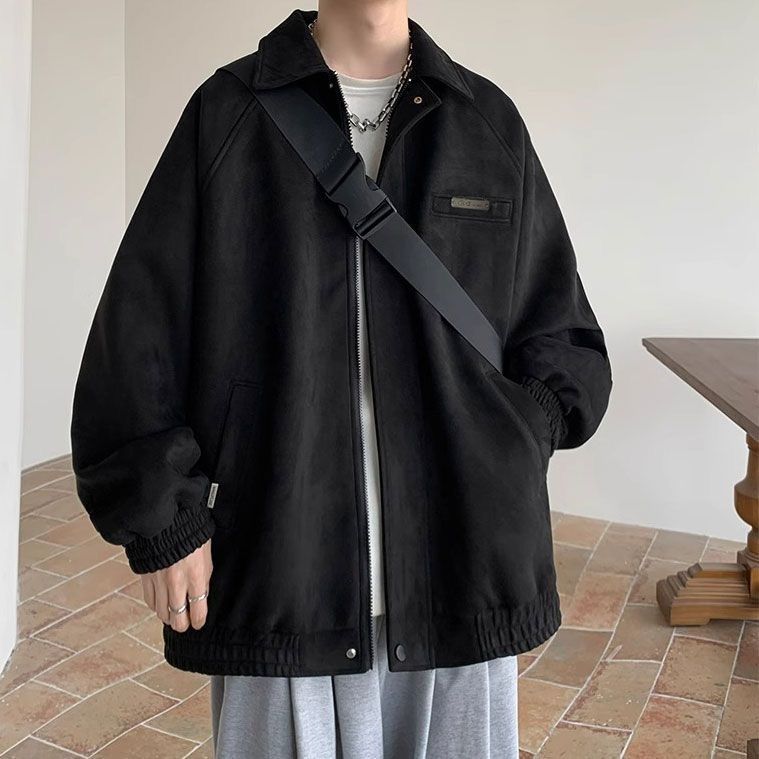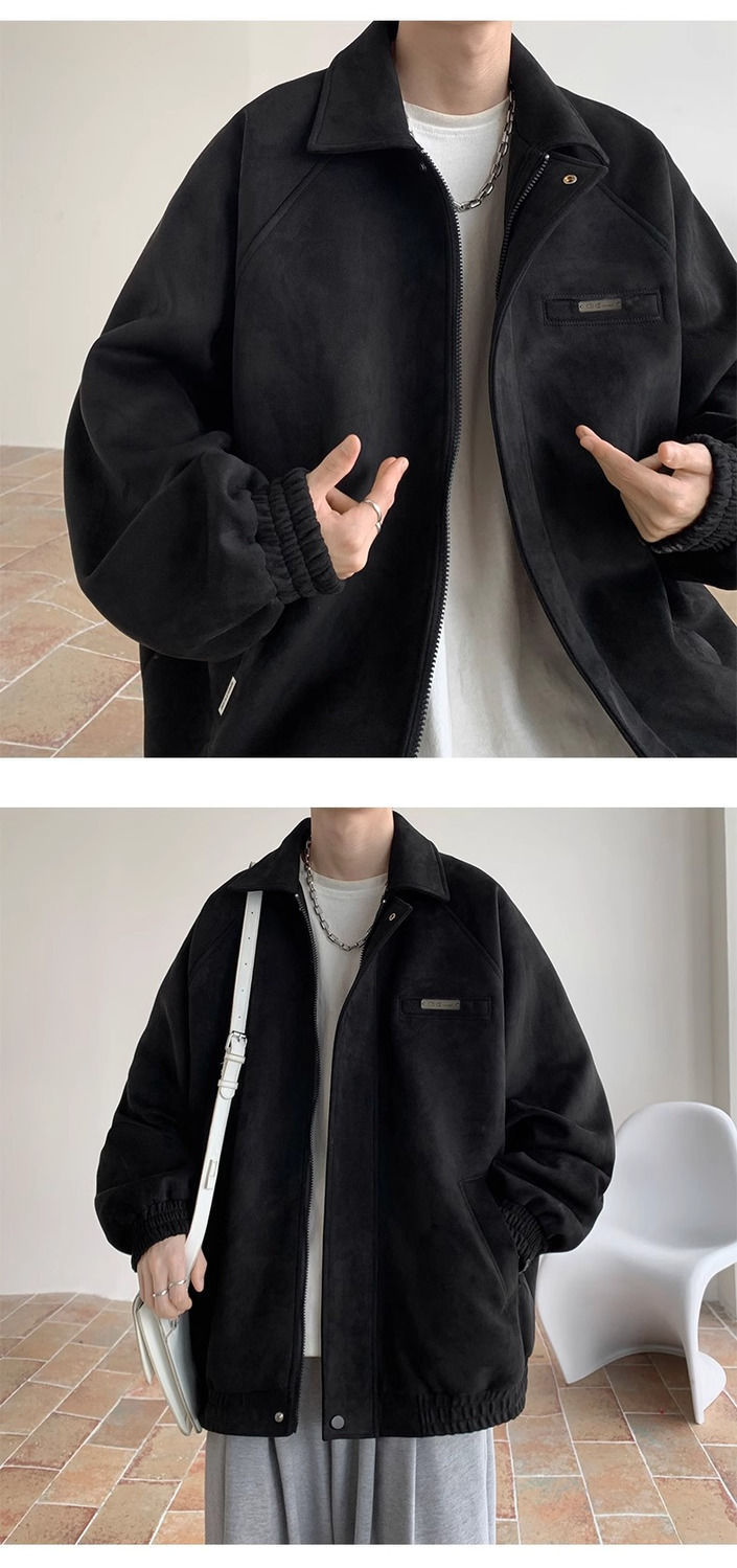 스웨이드 코트 소년 가을과 겨울 하이 엔드 느낌 강아지 슈아이-프라이드 스트리트 트렌디 브랜드 청소년 루즈 캐주얼 옷깃 재킷